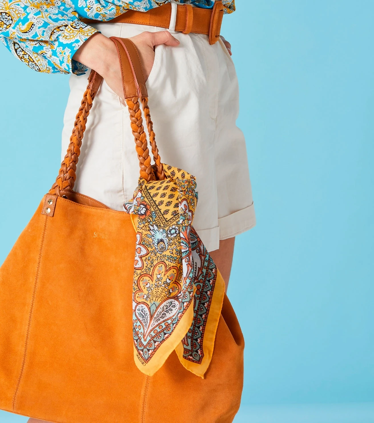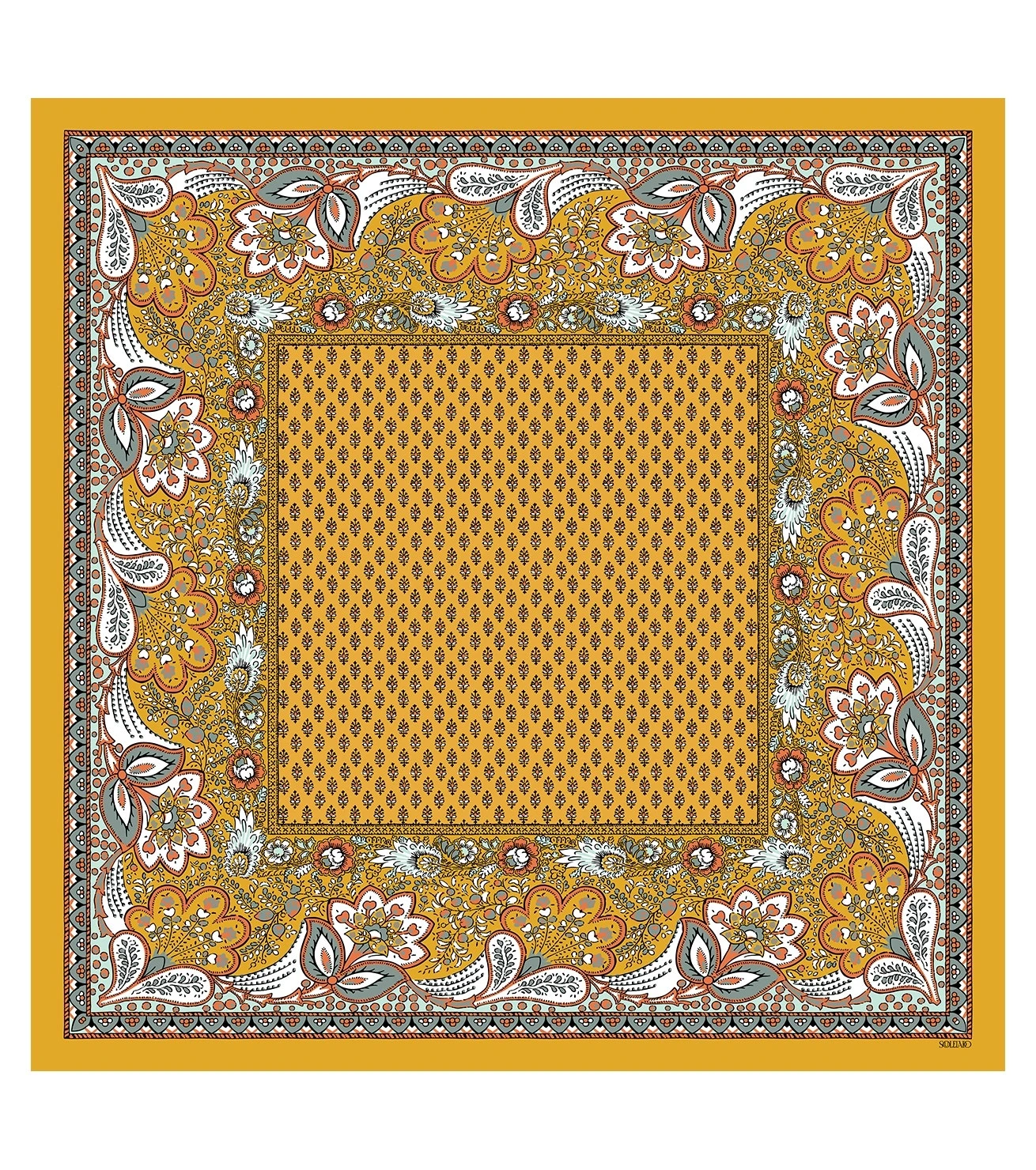 Bandana Coton COURONNE DE FLEUR Ocre 60 X 60 Cm