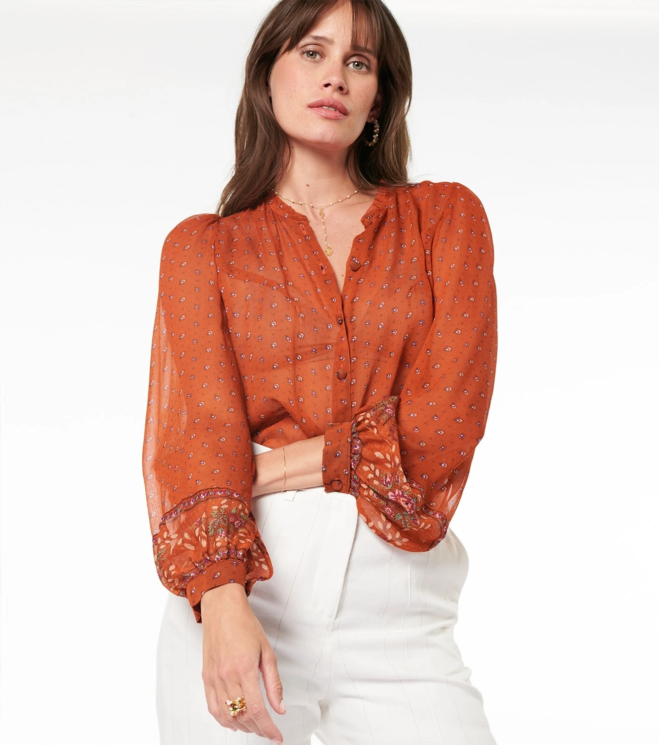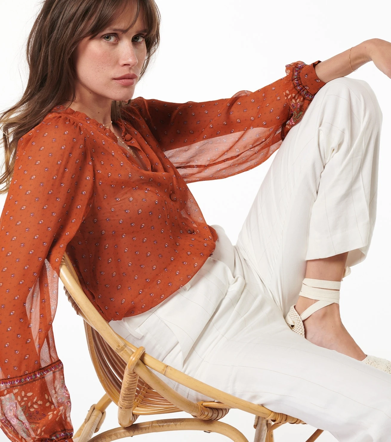 Blouse ADELAÏDE Petites Feuilles Tomette