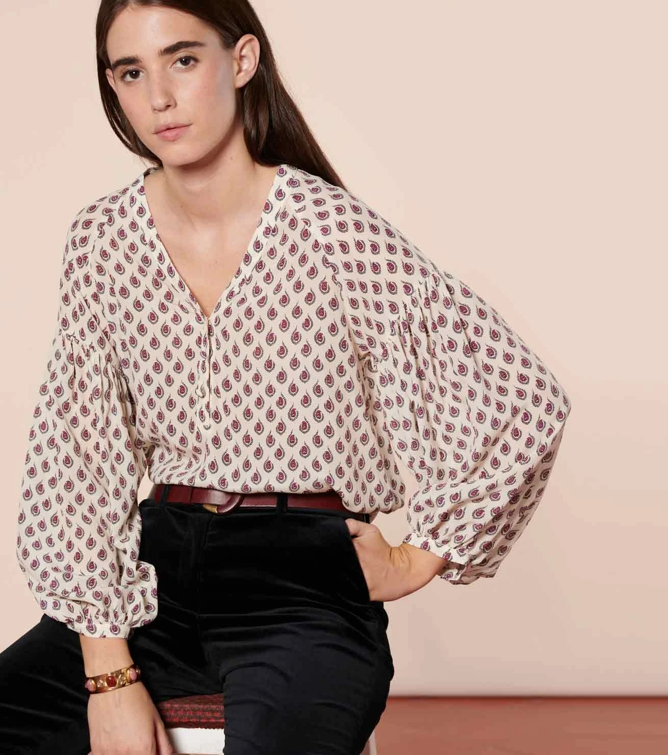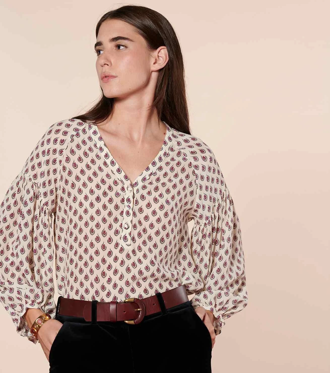 - Blouse ample et légère en soie imprimée Paisley Végétal (100% soie)