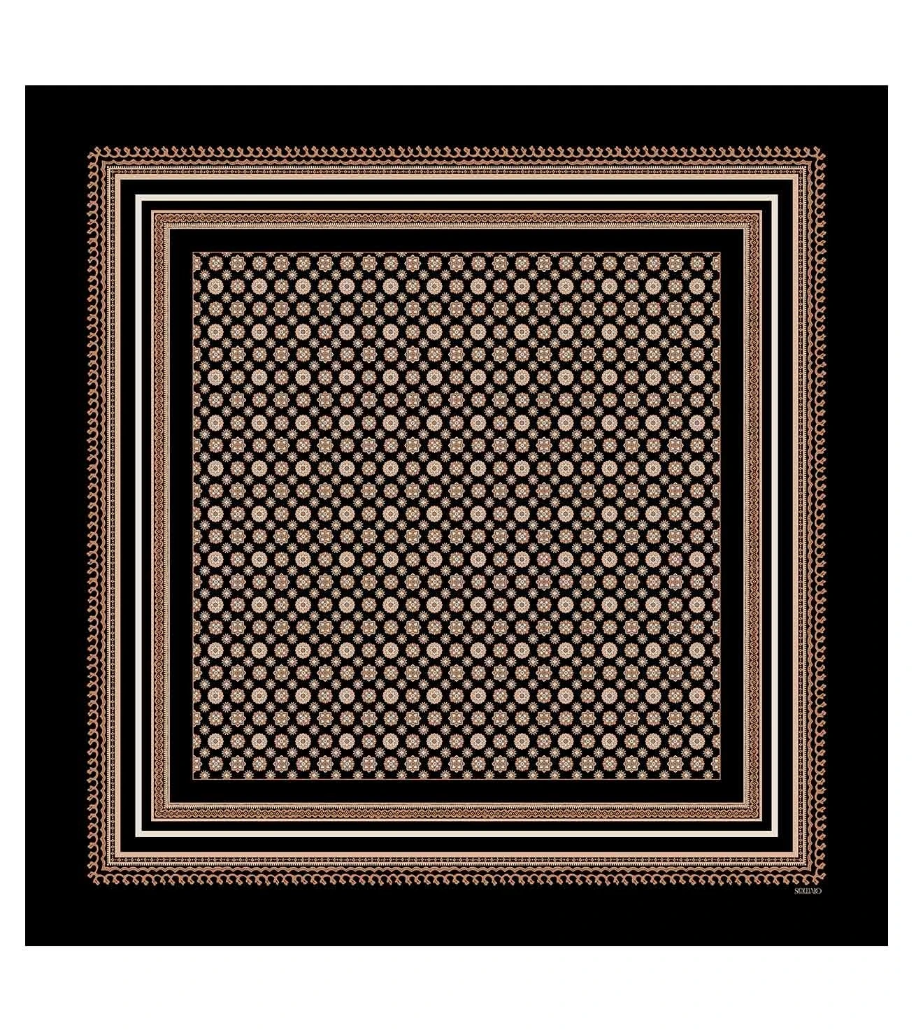 Carré En Twill De Soie MAILLANE Noir & Camel 90 X 90 Cm
