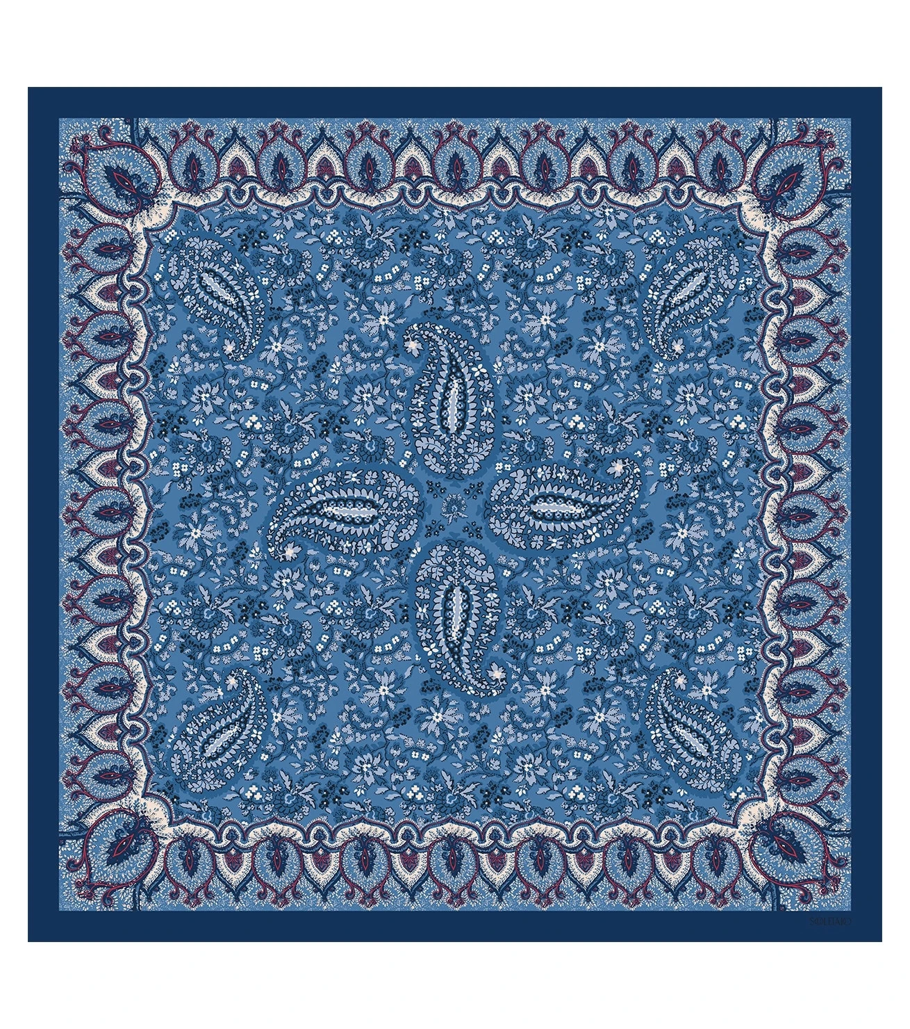 Carré En Twill De Soie STE MAXIME écru Et Indigo 90 X 90 Cm