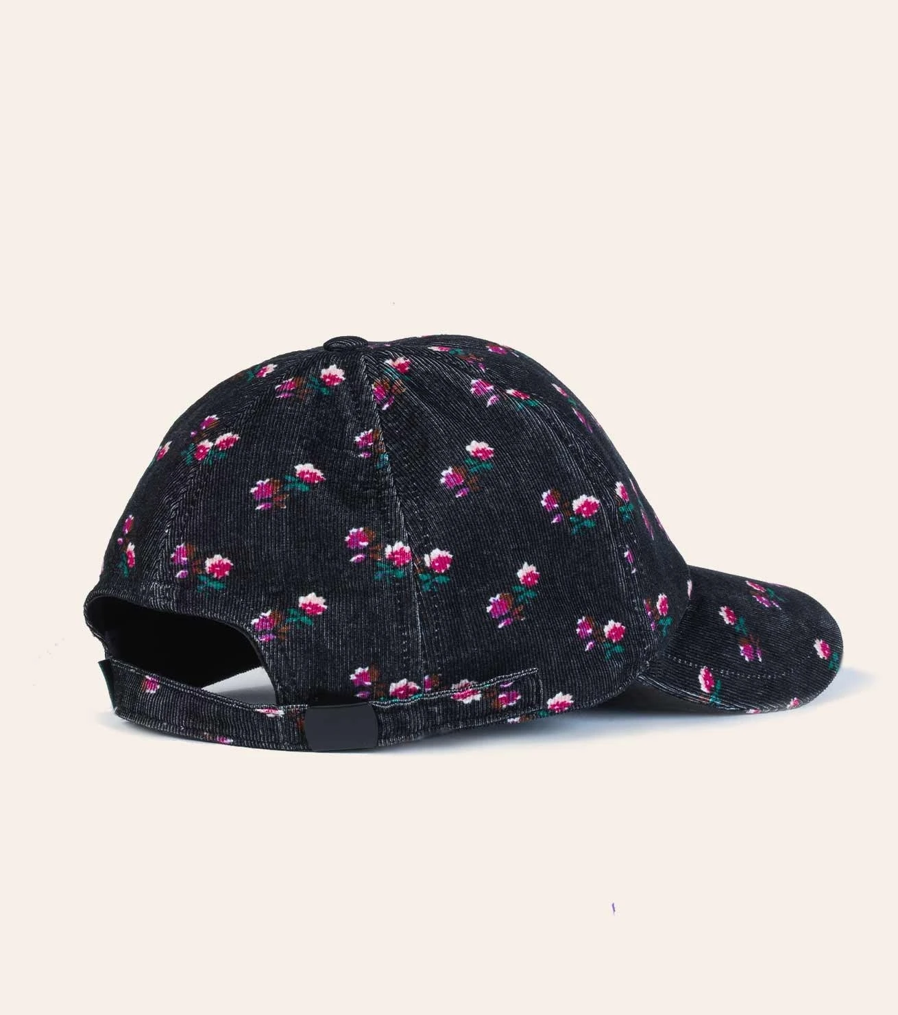 - Casquette en velours milleraie imprimé Pâquerette Noir fuchsia
