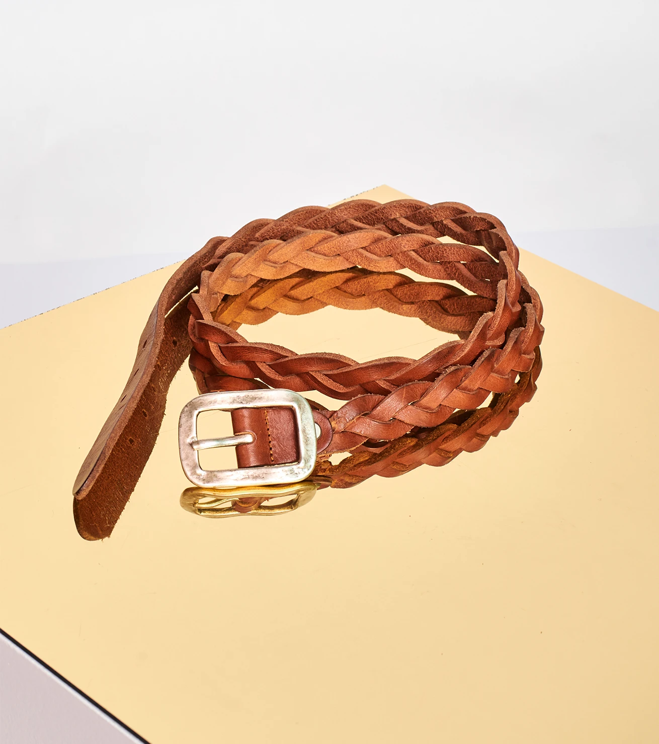 - Ceinture en cuir tressé cognac