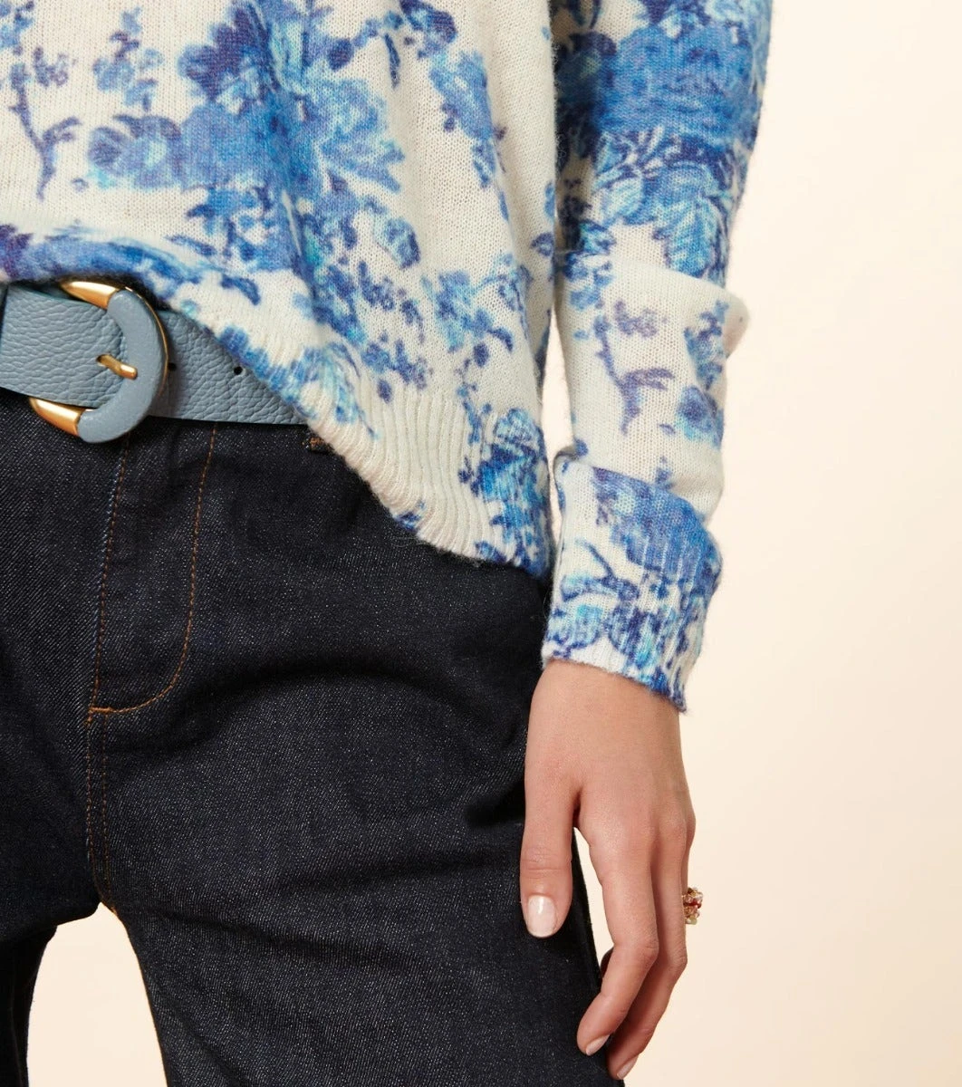 - Ceinture en cuir grainé coloris Bleu gris