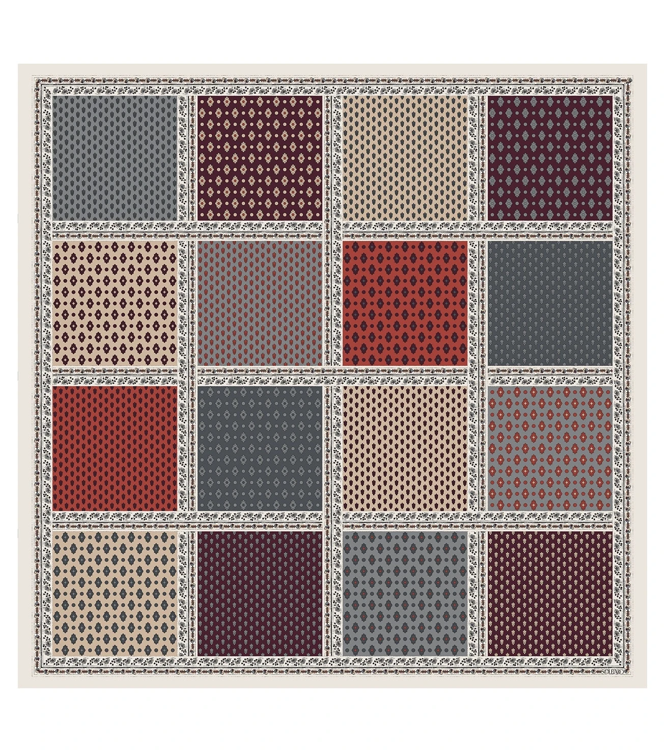 Châle En Laine Et Soie ITALIENNE Gris & Bordeaux 135 X 135 Cm