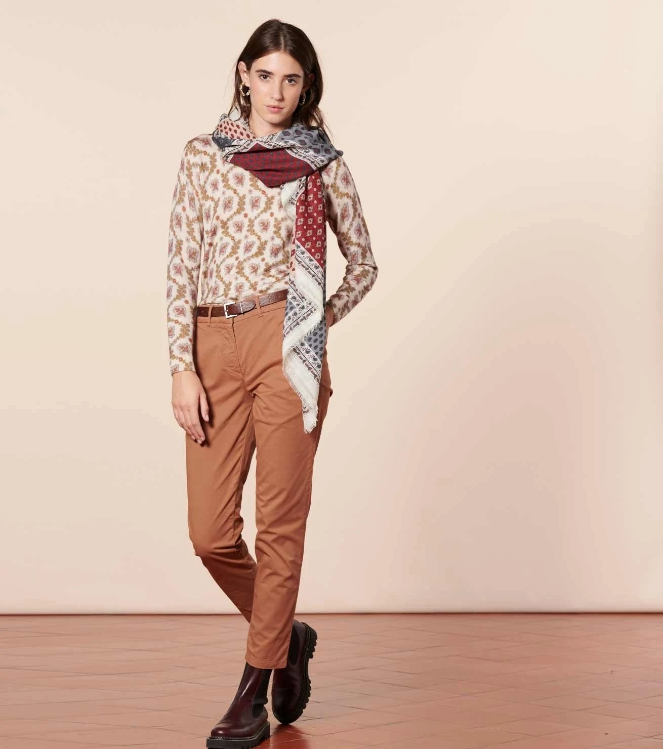 - Châle en laine et soie, imprimé « Italienne » Gris-Bordeaux