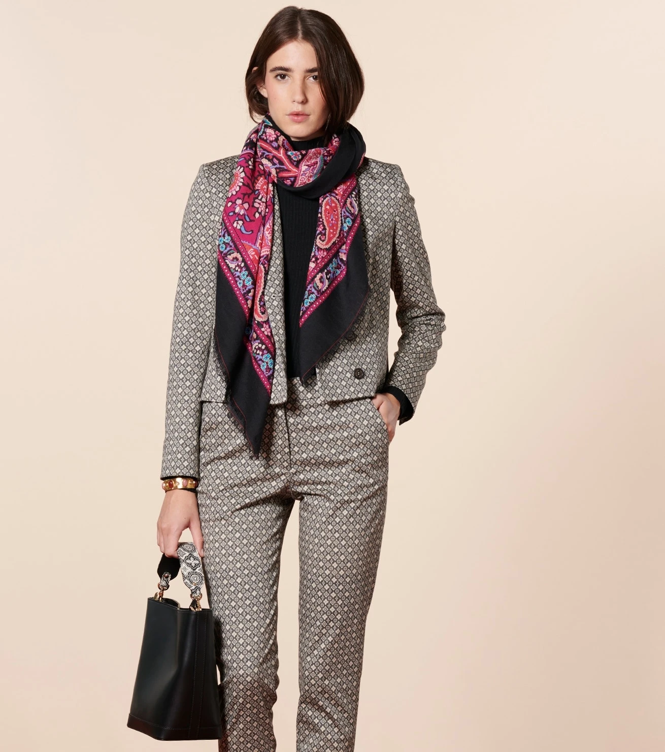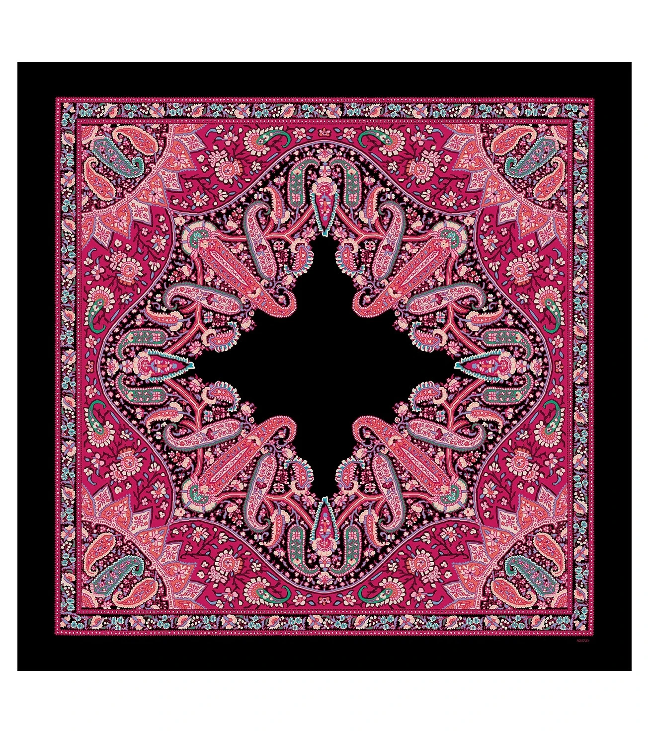 Châle En Laine Et Soie SLAVE Noir-Fuchsia 140 X 140 Cm