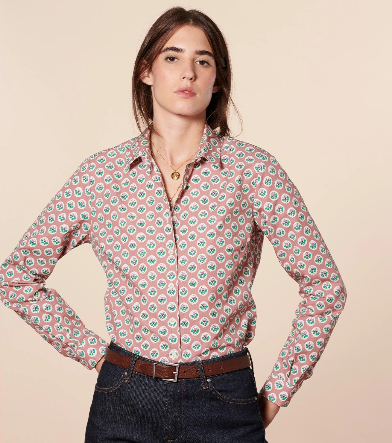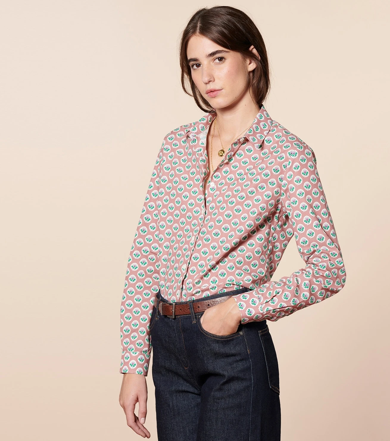 - Une chemise ajustée en popeline imprimée Fleur d’Arles (100% coton)