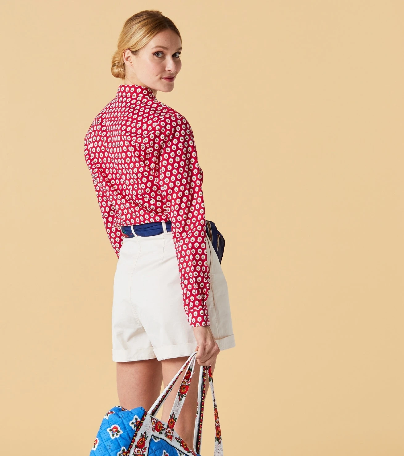 - Manches longues resserrées dans un poignet fermé par un bouton de nacre gravé