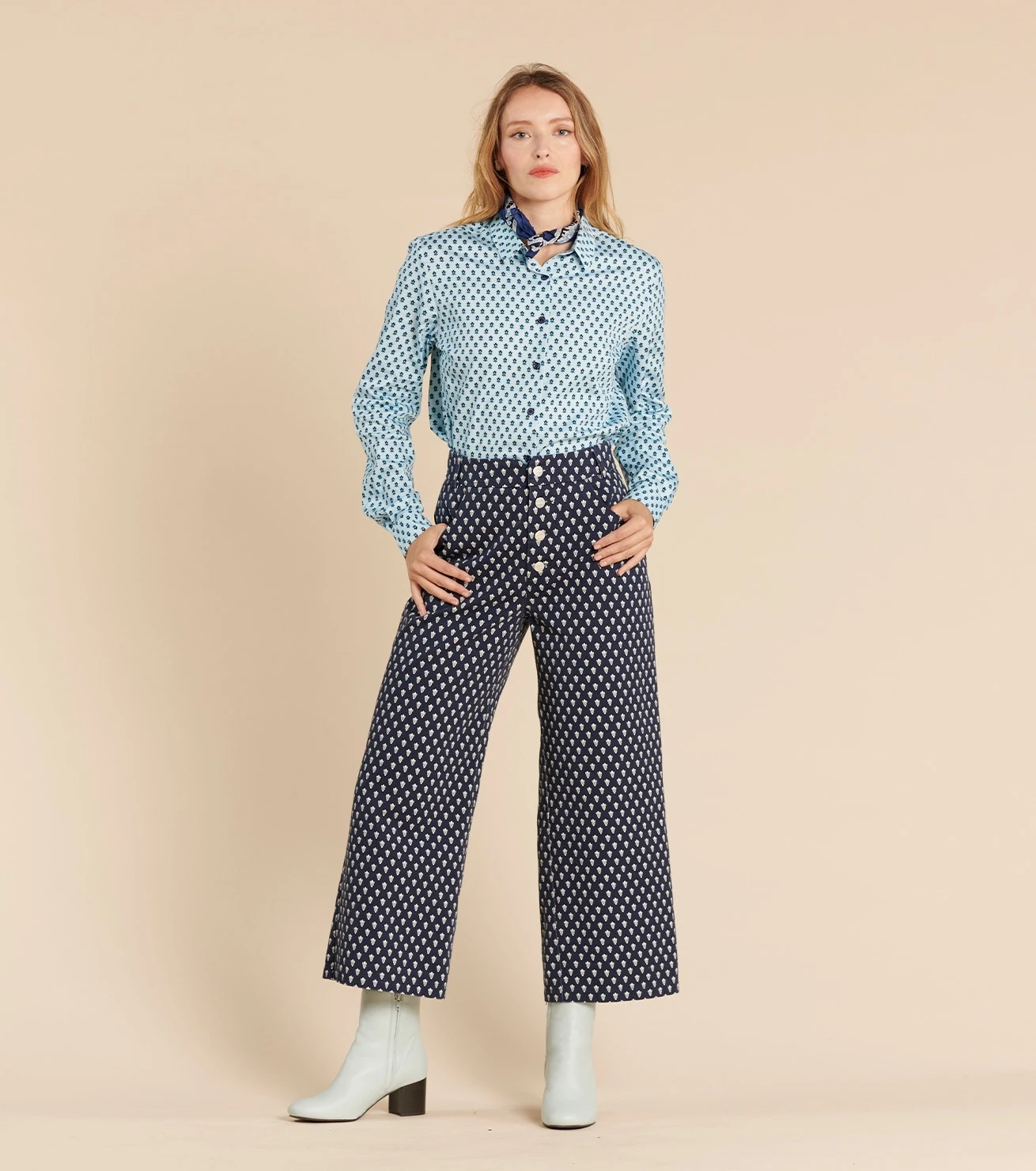 - Manches longues resserrées dans un poignet fermé par un bouton de nacre gravé