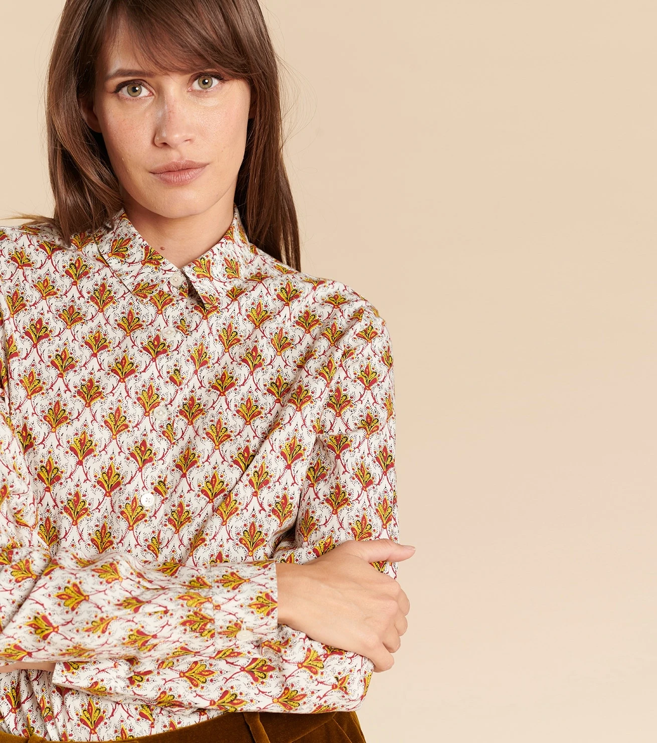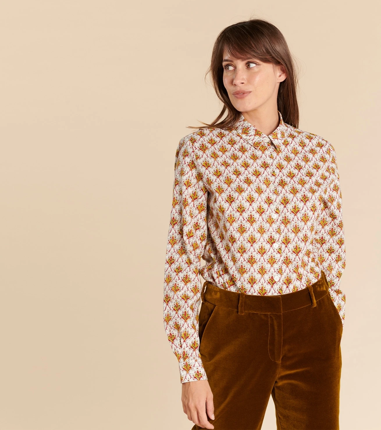 - Manches longues resserrées dans un poignet fermé par un bouton de nacre gravé