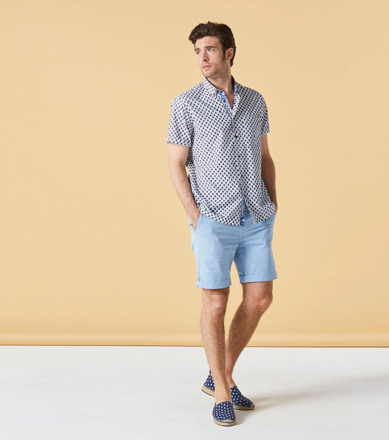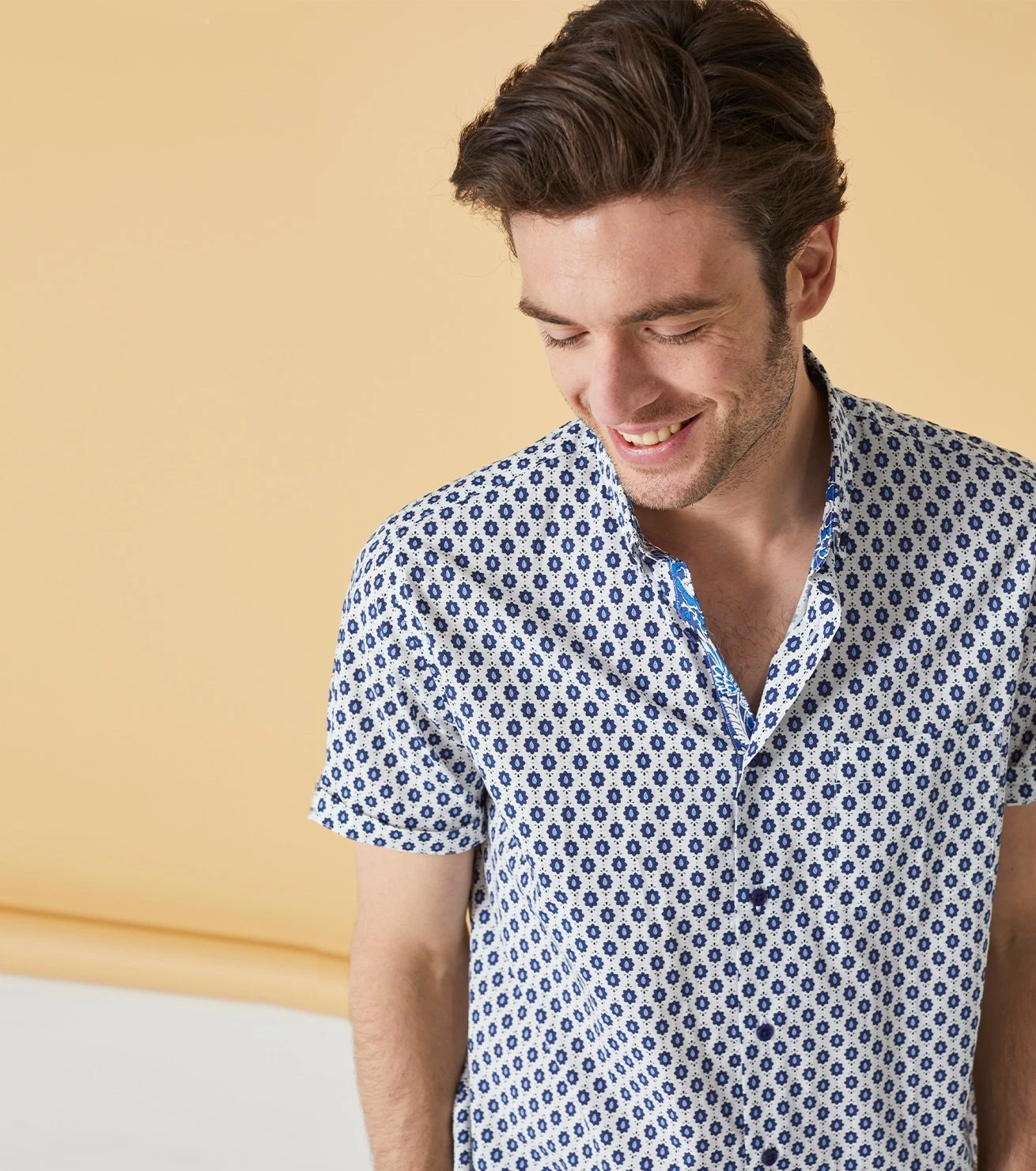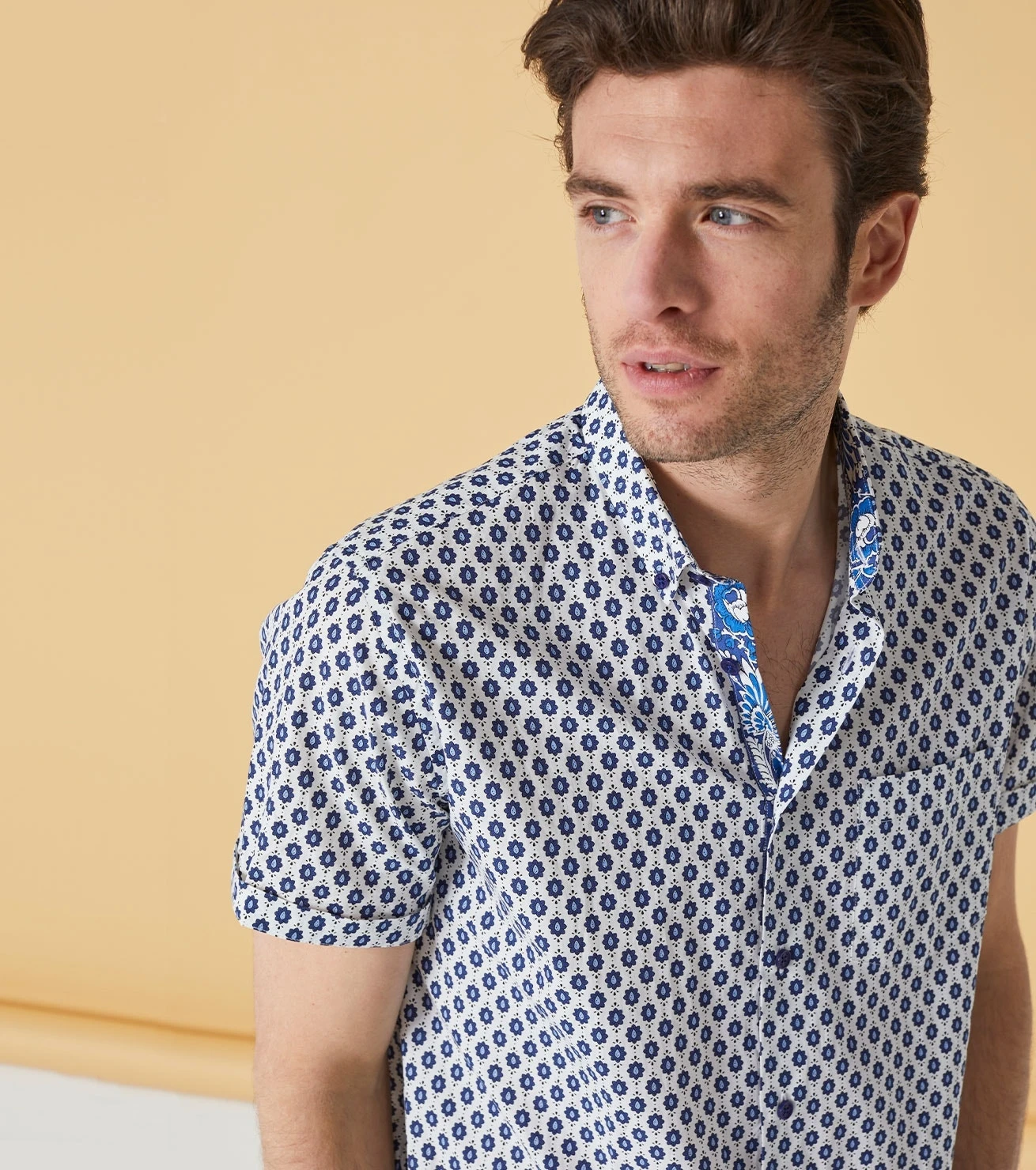 - Galon Le Petit Artichaud Bleu-Blanc en opposition sous gorge et intérieur pied de col.