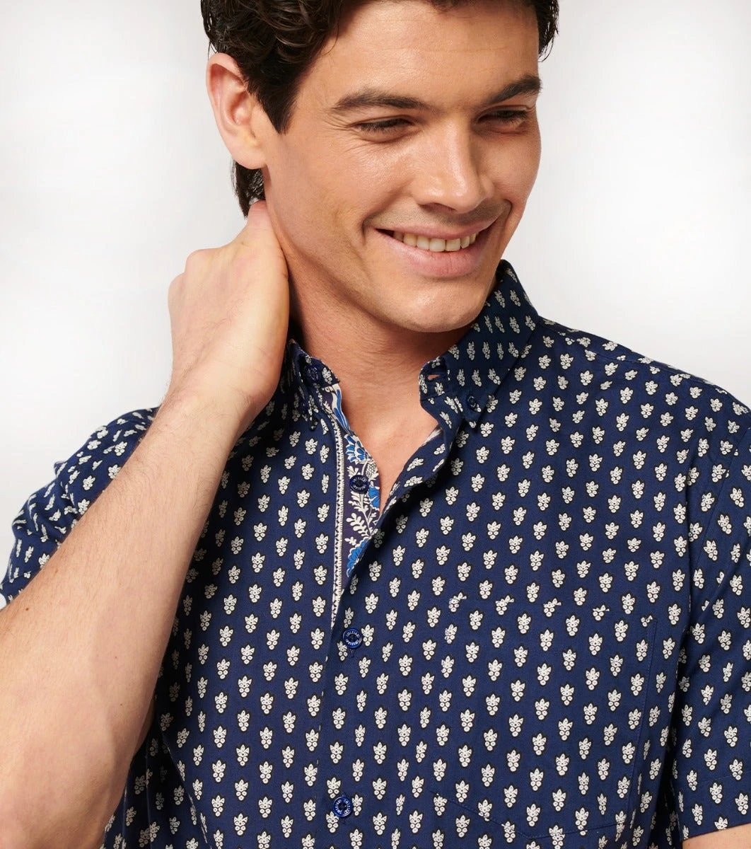 - Frise Le Petit artichaut bleu en opposition sous gorge et intérieur pied de col.