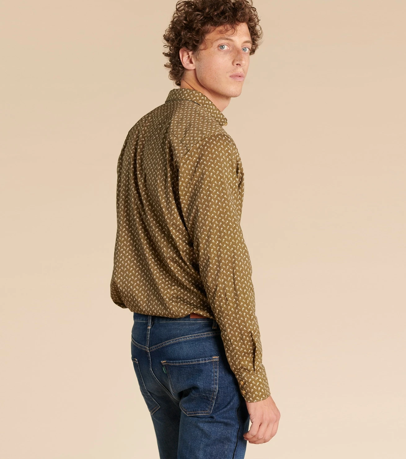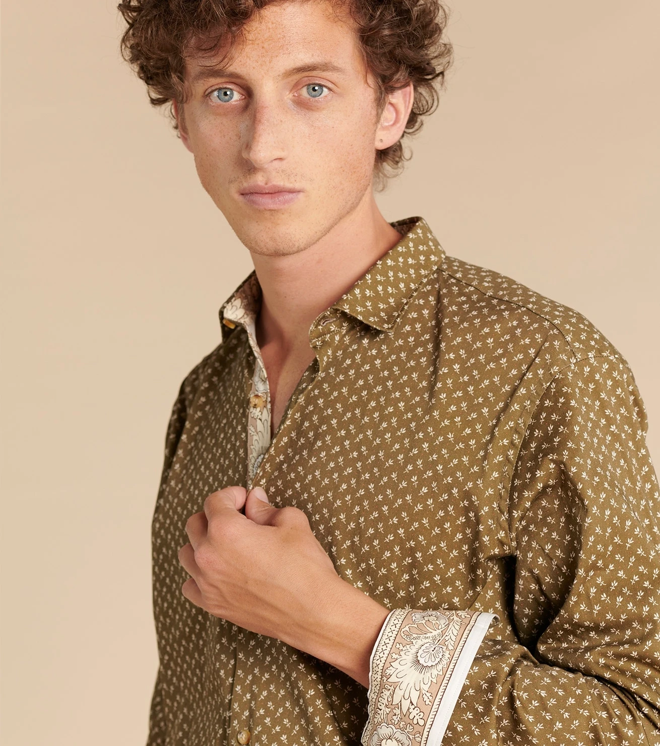 - Frise LE PETIT ARTICHAUD beige en opposition sous gorge, intérieur pied de col et intérieur poignet