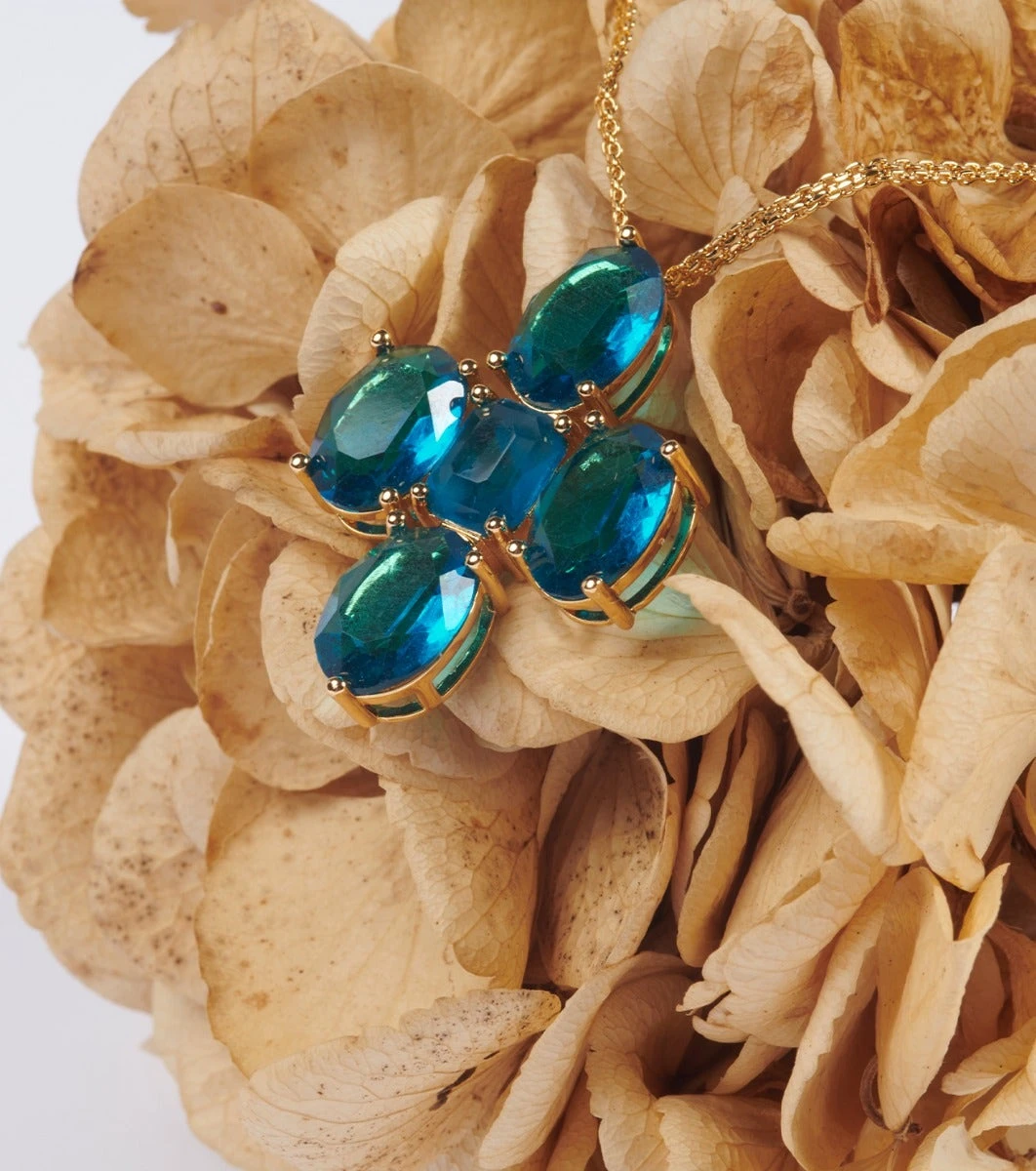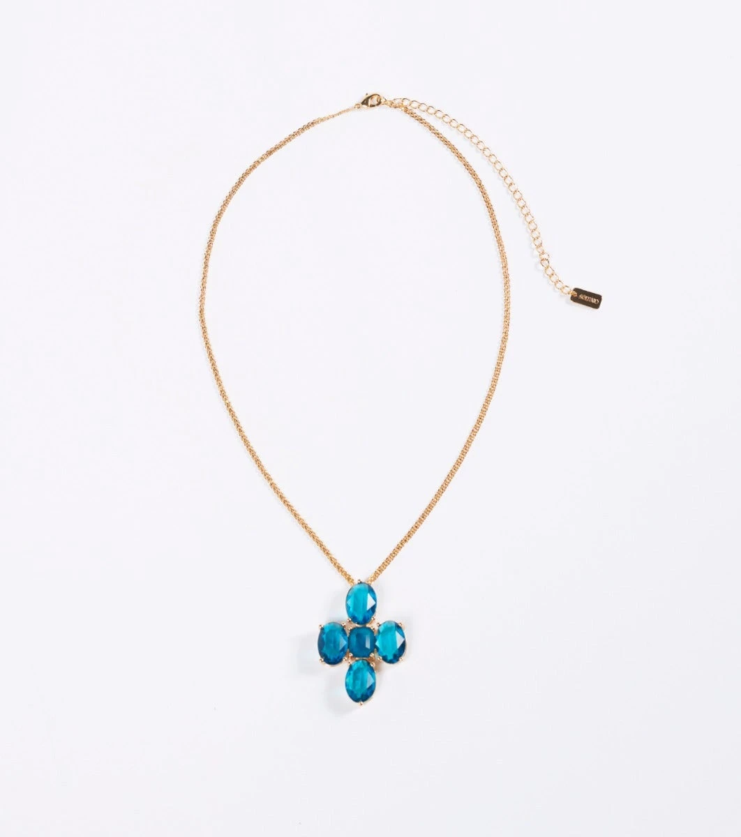 - Croix avec pierres en verre de différentes formes bleu azur.