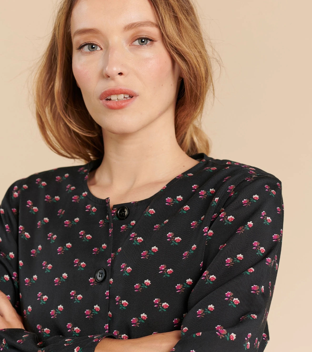 - Manches longues resserrées par un petit poignet et boutons gravés
