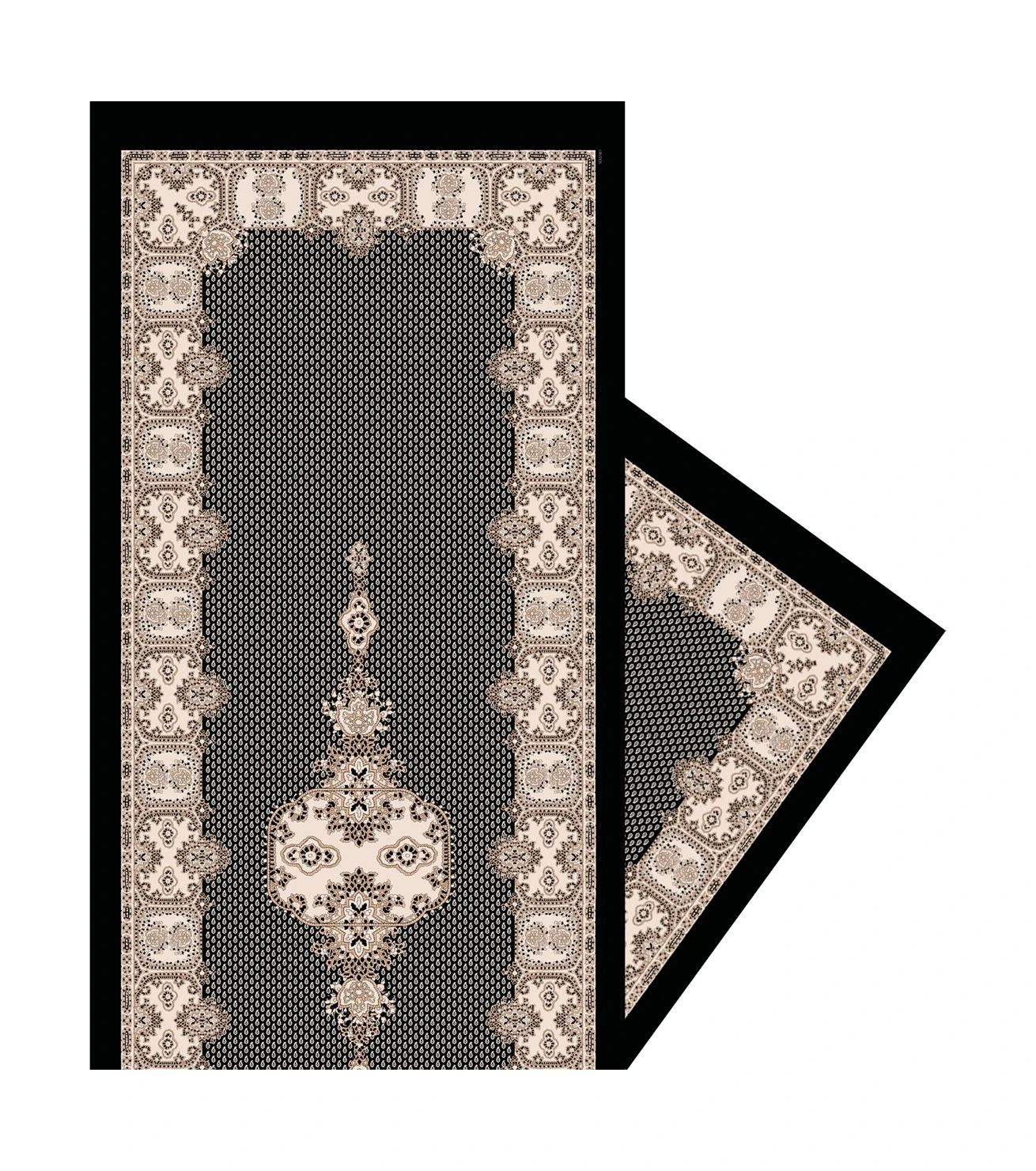 Grande étole imprimé du dessin Petit Cachemire coloris noir et écru
