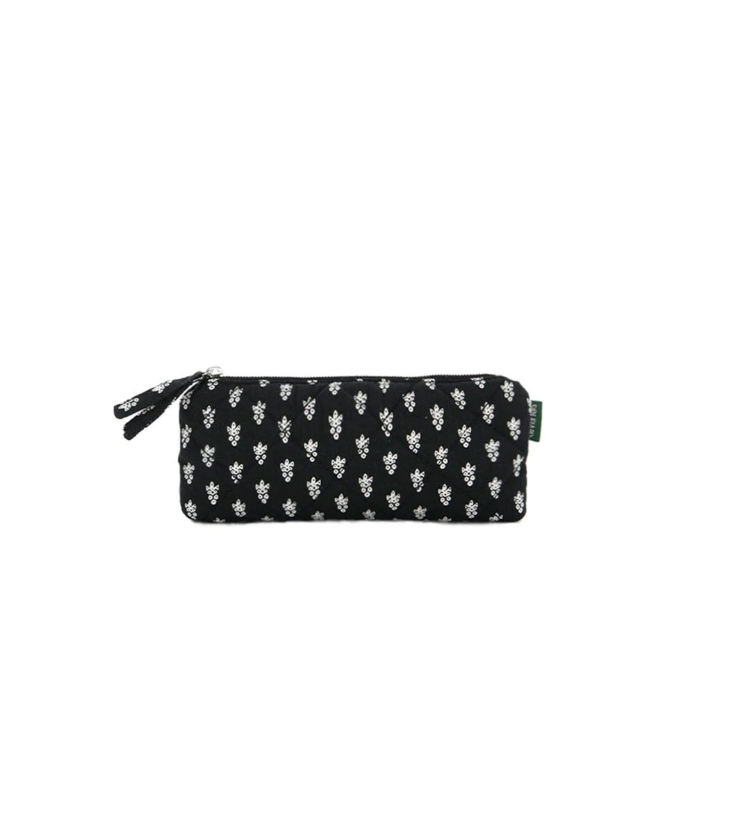 - Étui à lunettes en coton matelassé losange imprimé « La Mouche » coloris blanc fond noir