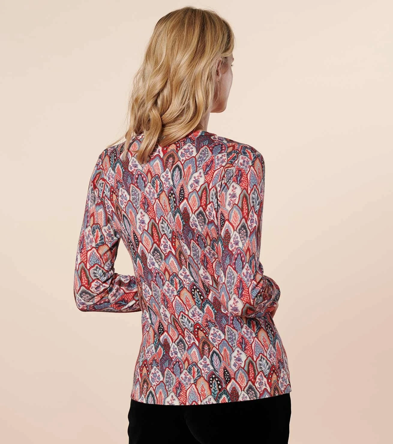 - Cardigan fin en maille imprimée Plume Rouge en laine et soie (75% laine, 25% soie)