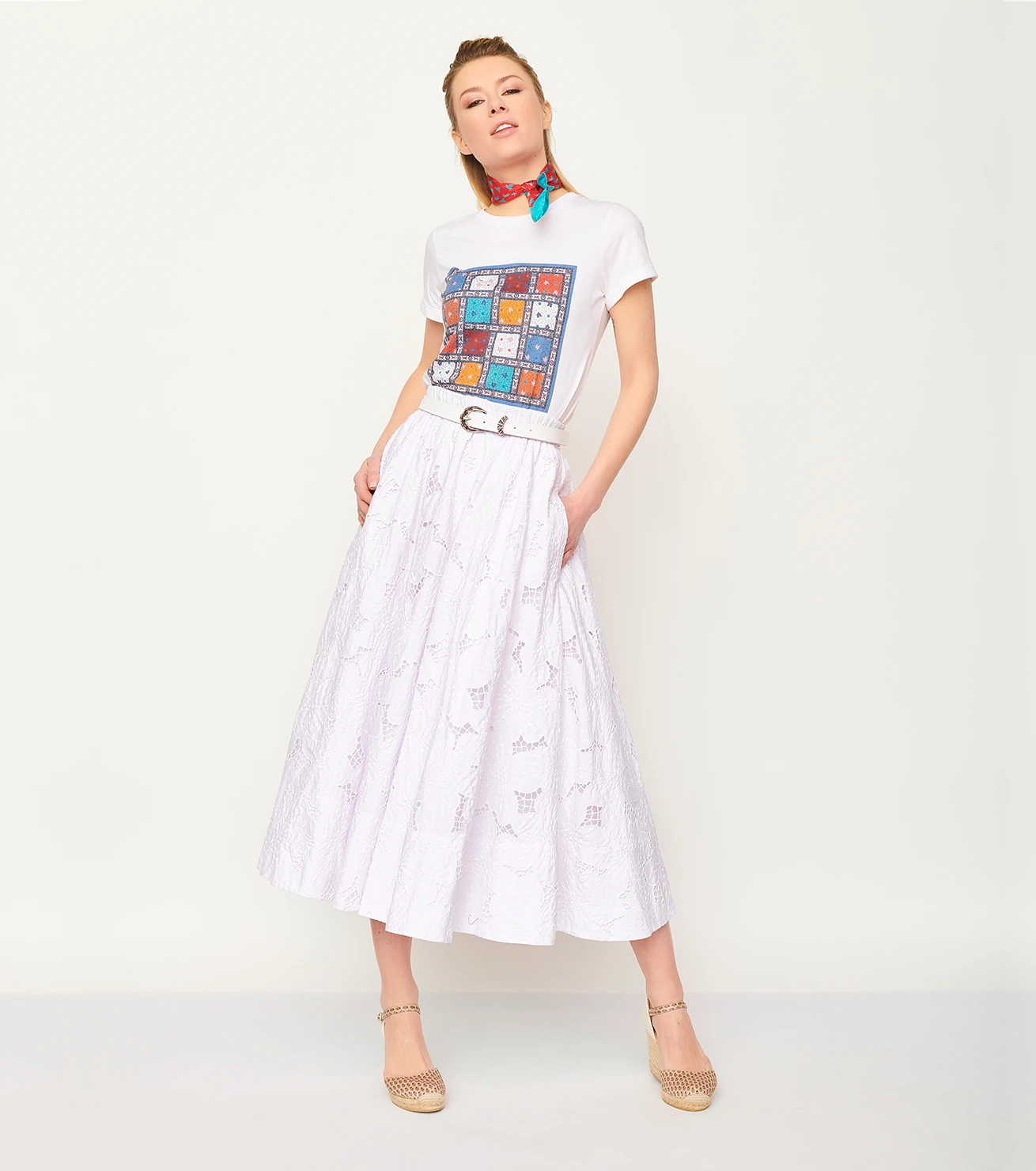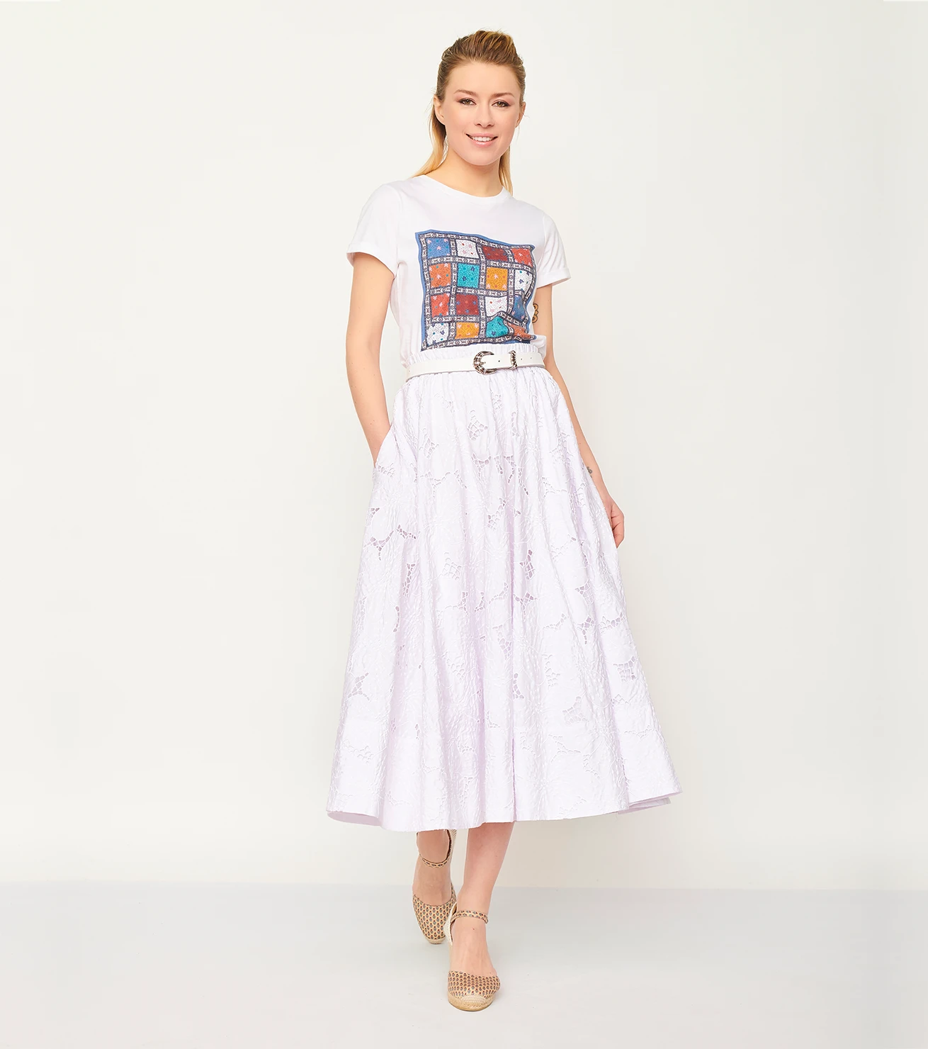 Jupe « midi » sous le genou en broderie anglaise