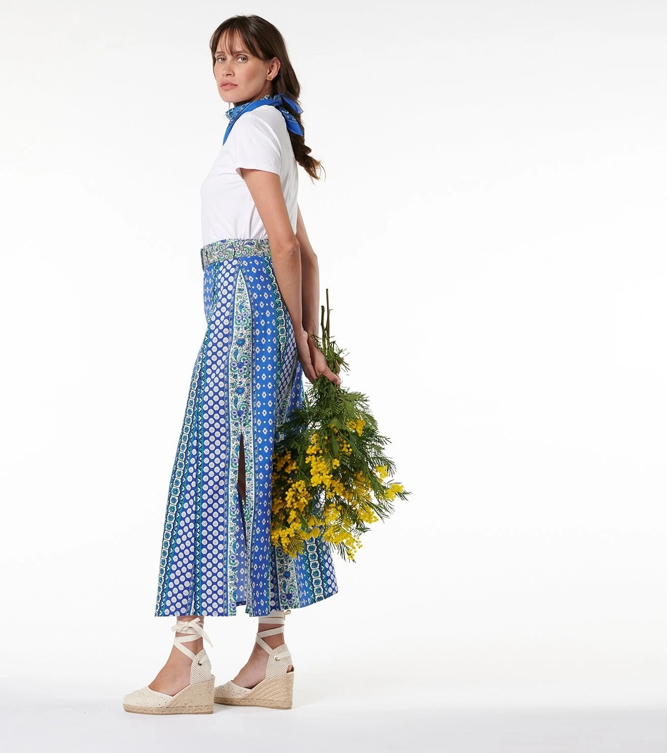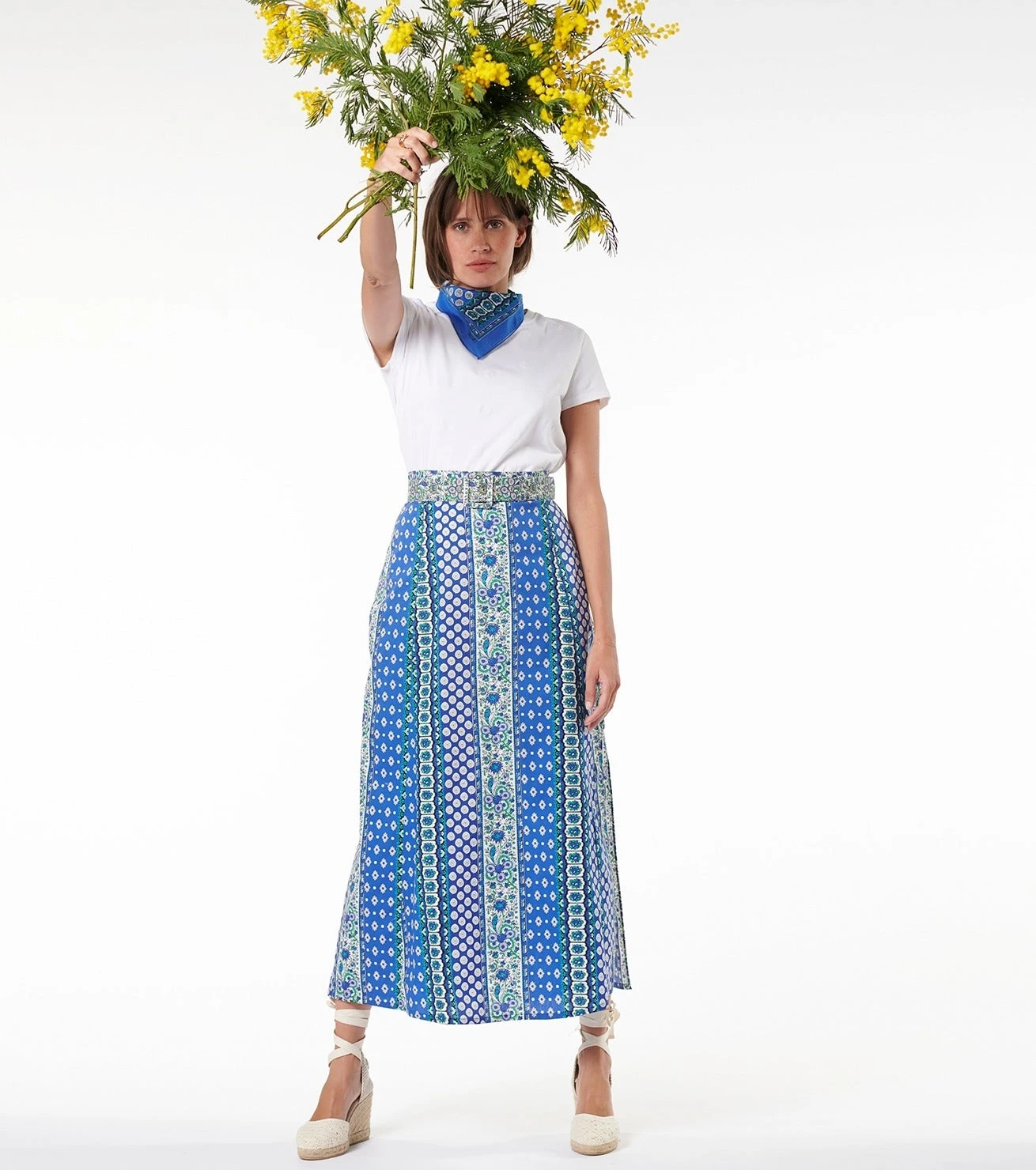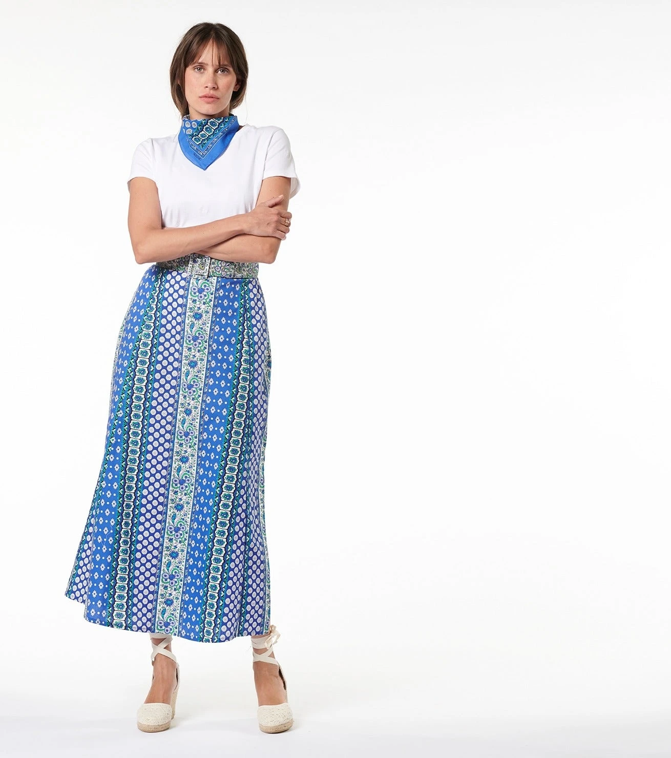 Jupe MIRELLE Bande Provençale Bleu Menthe