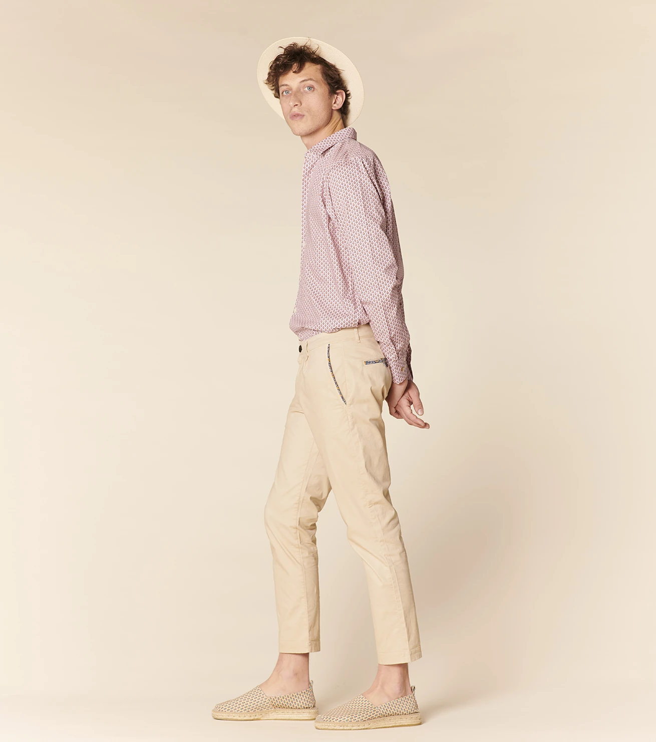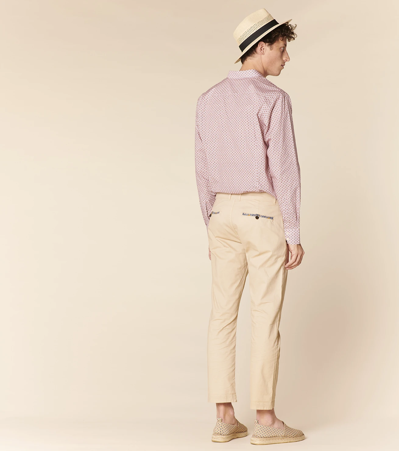 - Liserés en bordure des poches et finition intérieure de la taille en motif Sormiou