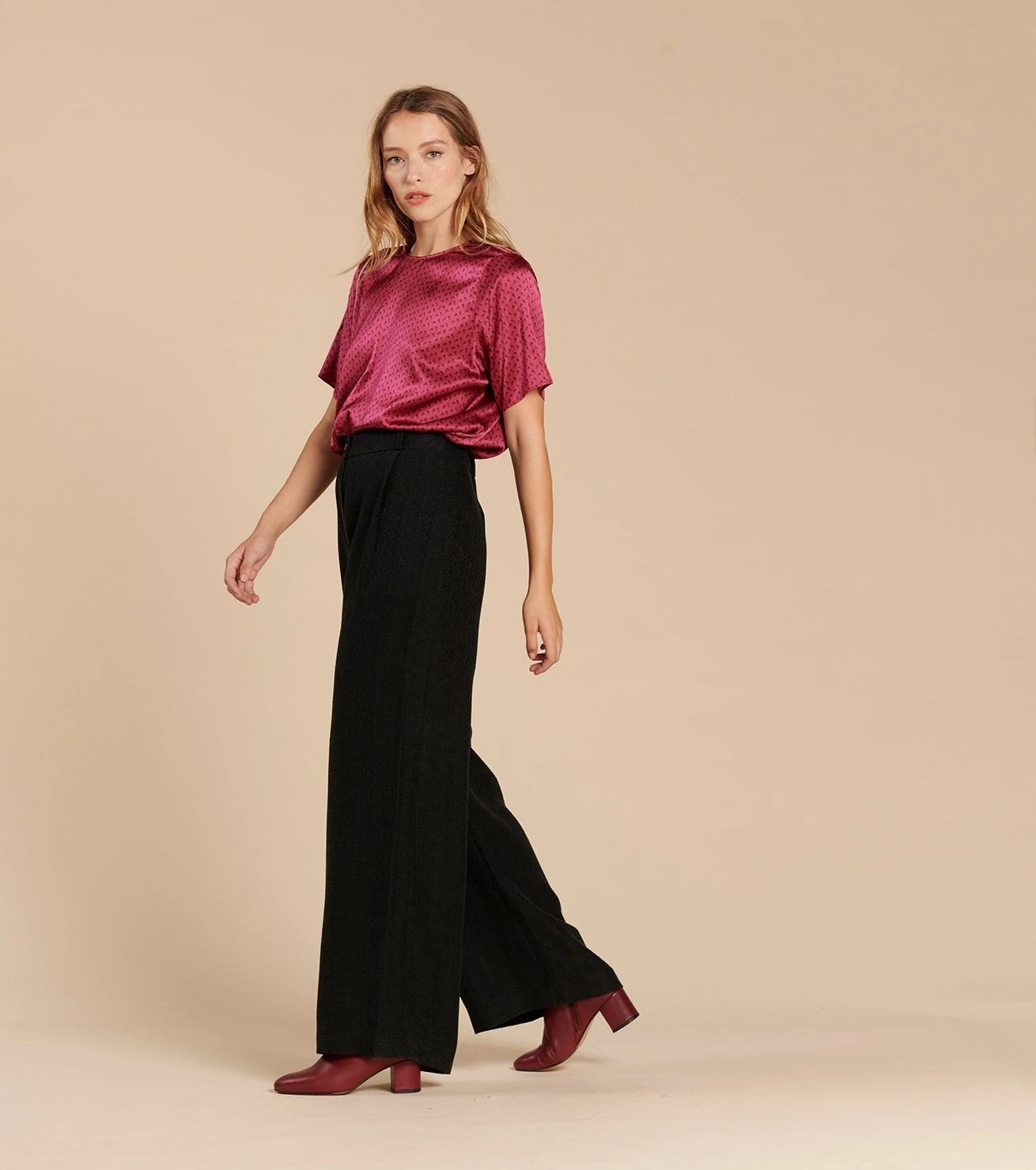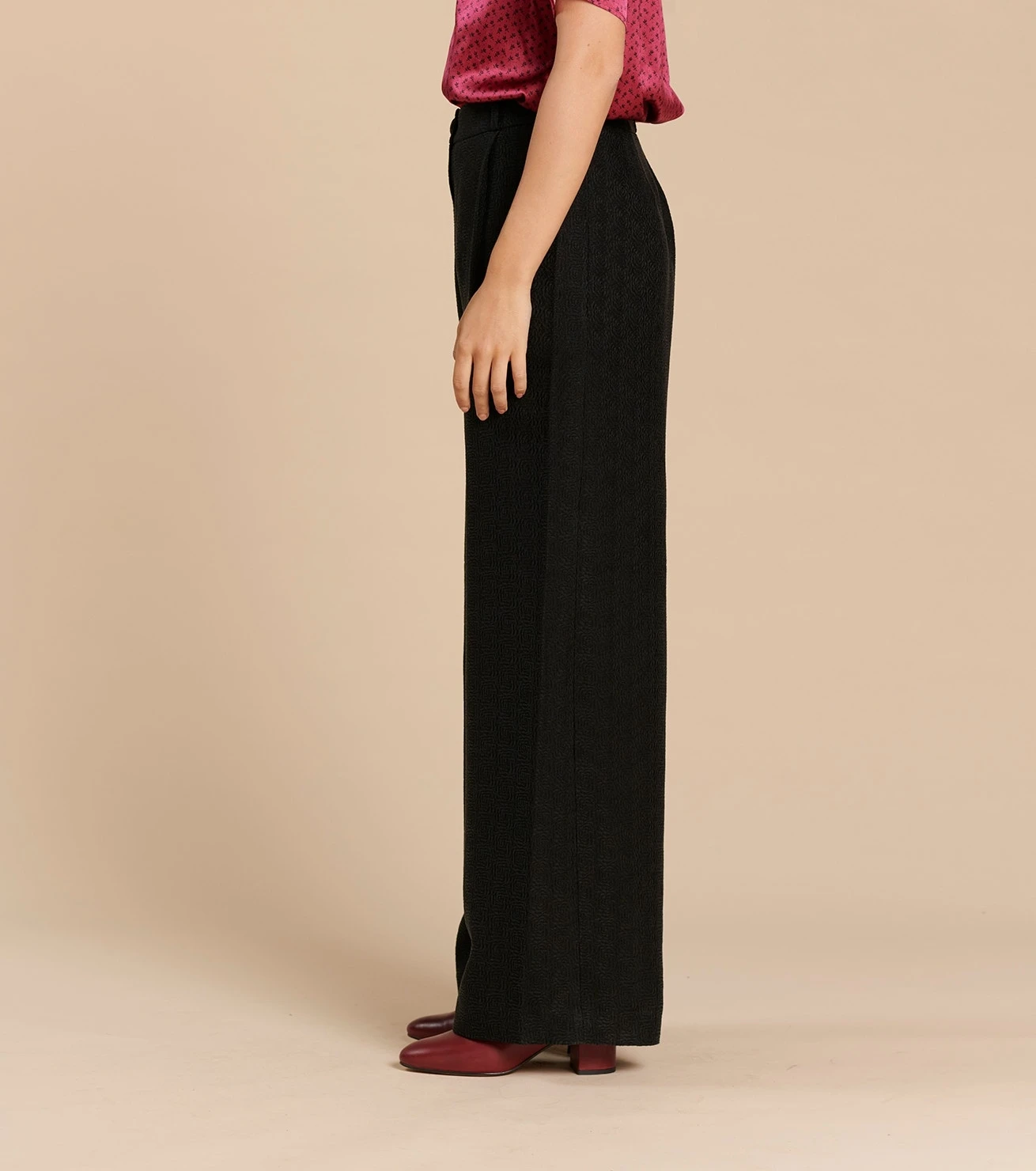 Pantalon LOUISI Cupro Jacquard Rosace Noir