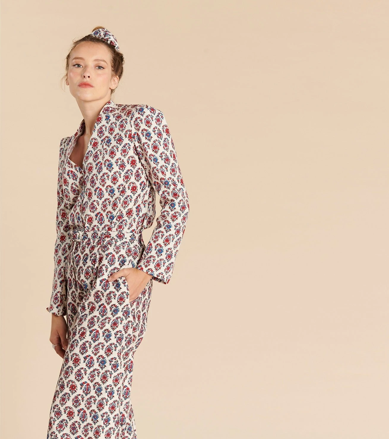 - Ceinture à la taille ornée de passants et d’un bouton gravé