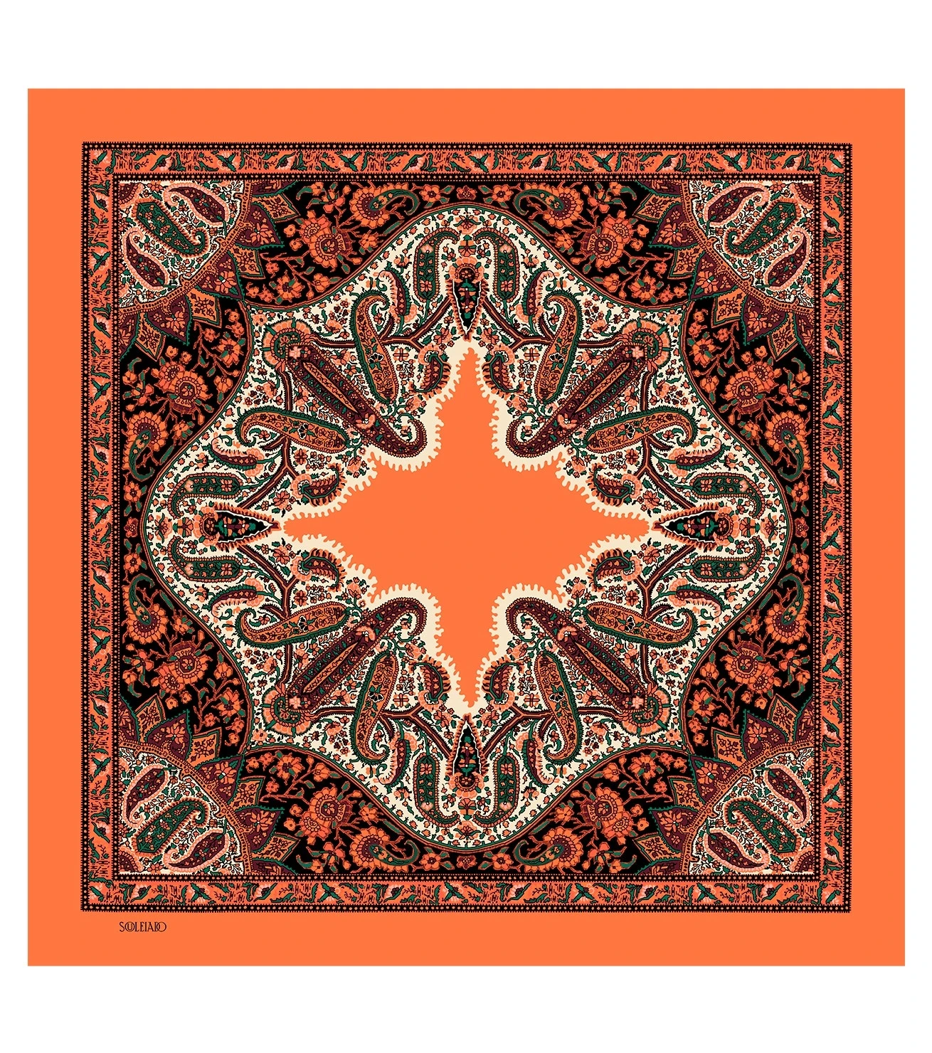 Pochette Gavroche En Twill De Soie SLAVE Orange 45 X 45 Cm