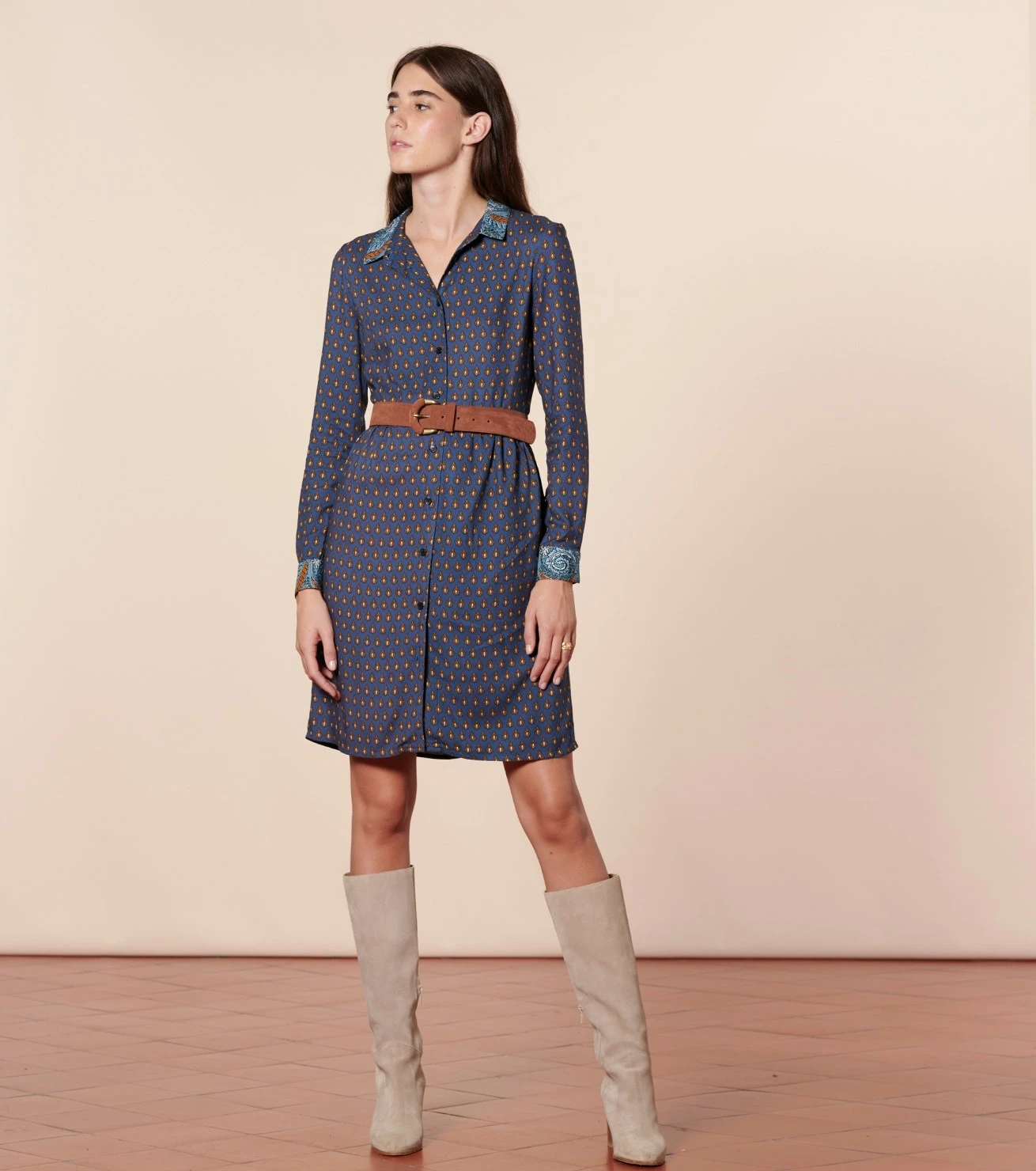 - Robe chemise courte en twill viscose imprimé Petit Scarabée (100% viscose)