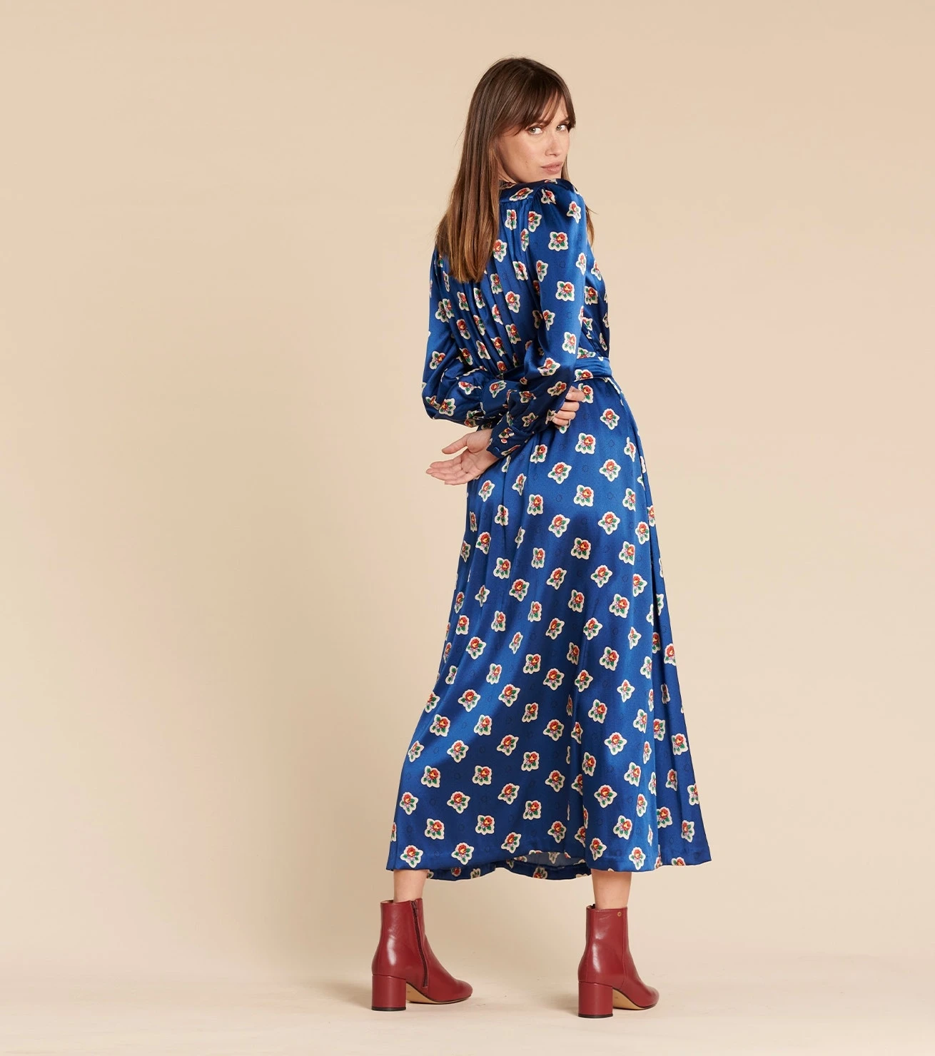 Robe ISIS Printemps En Satin De Soie Marine Et écru