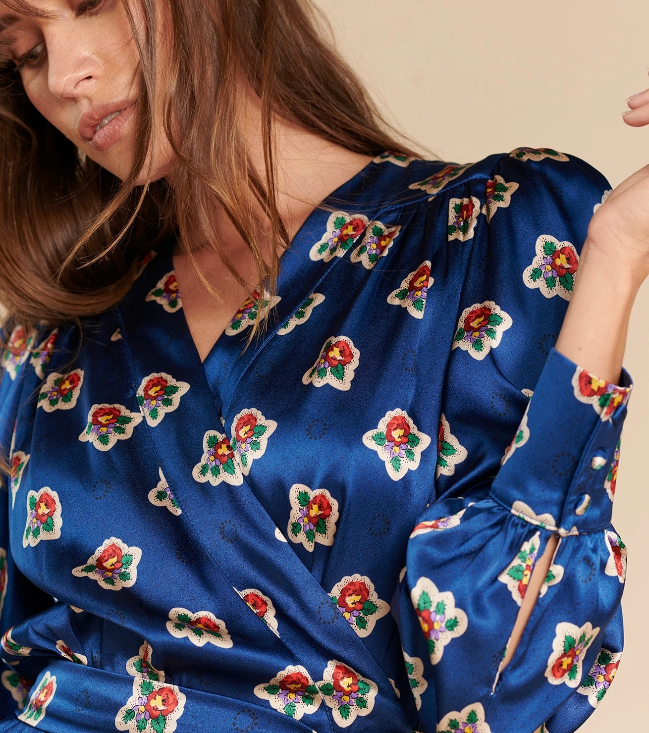 - Jolies manches bouffantes resserrées par un poignet et boutons recouverts