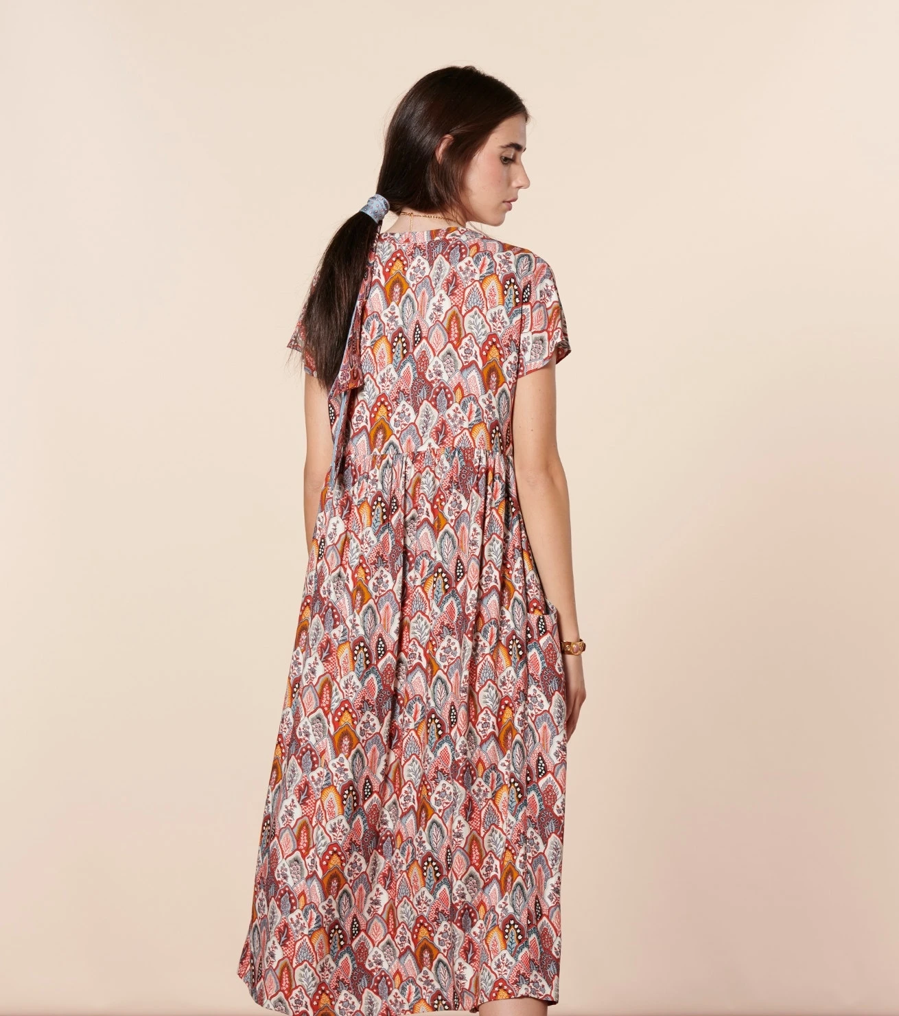 - Robe décontractée et ample en twill viscose imprimé Plume rouge