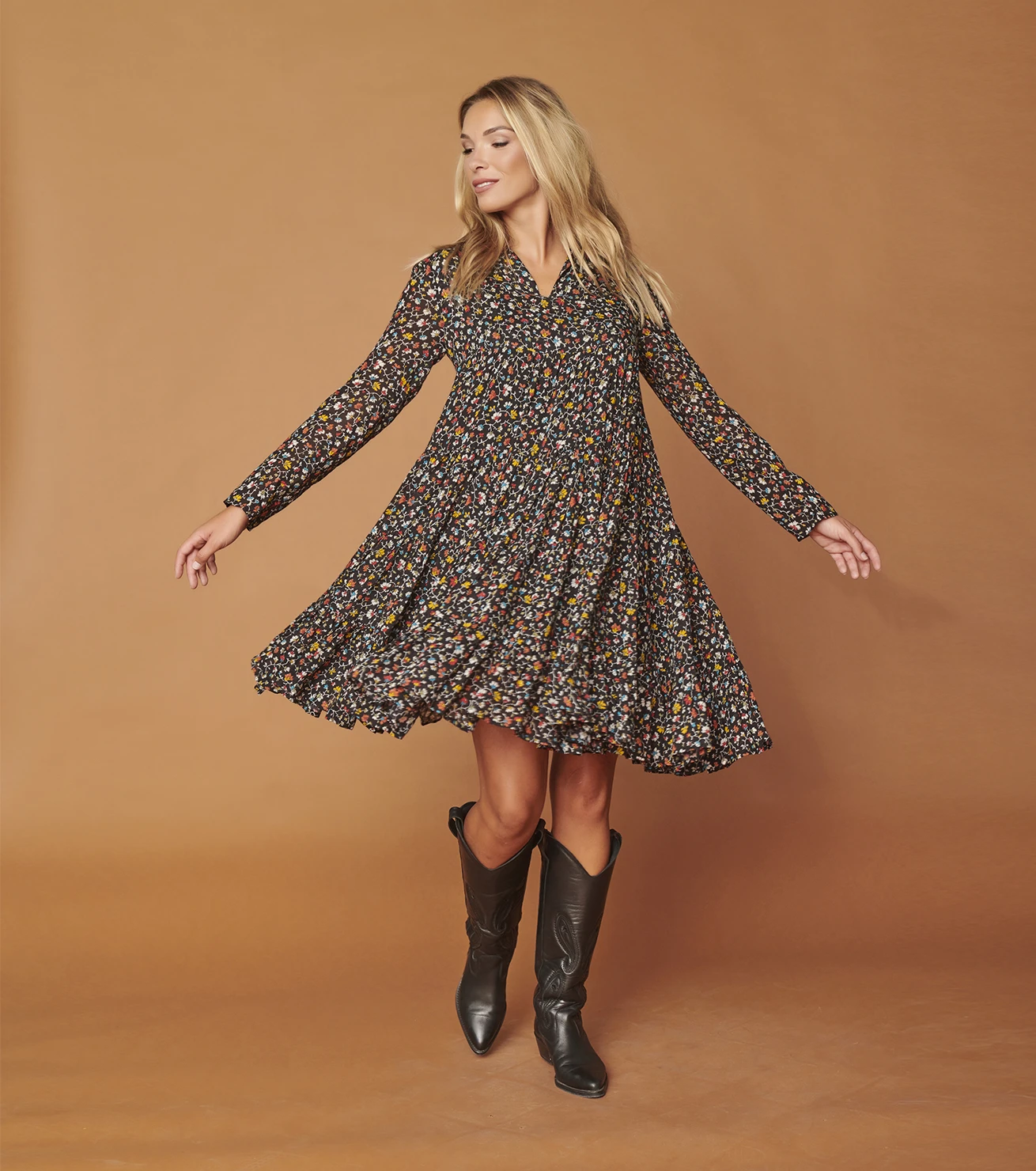 Robe babydoll longueur sur le genou en voile viscose et laine
