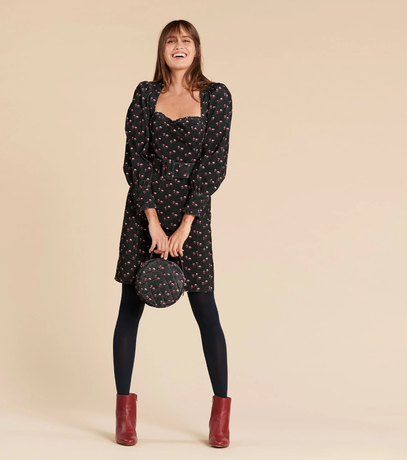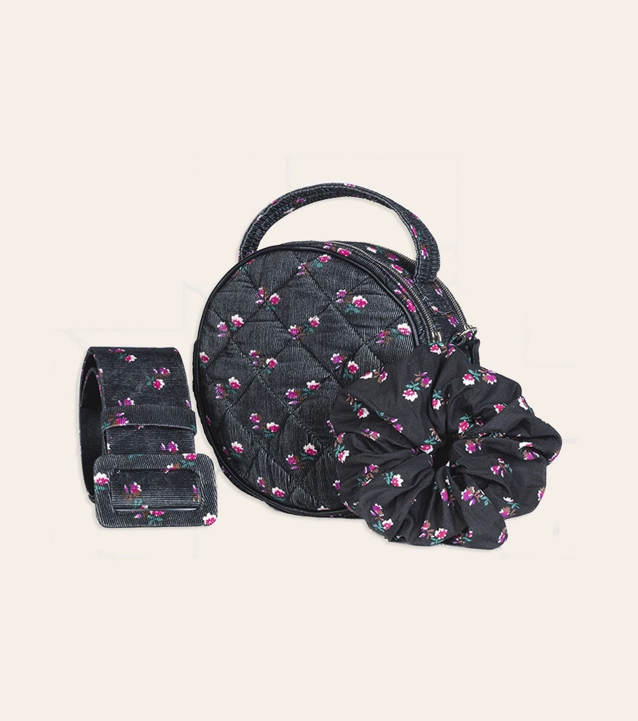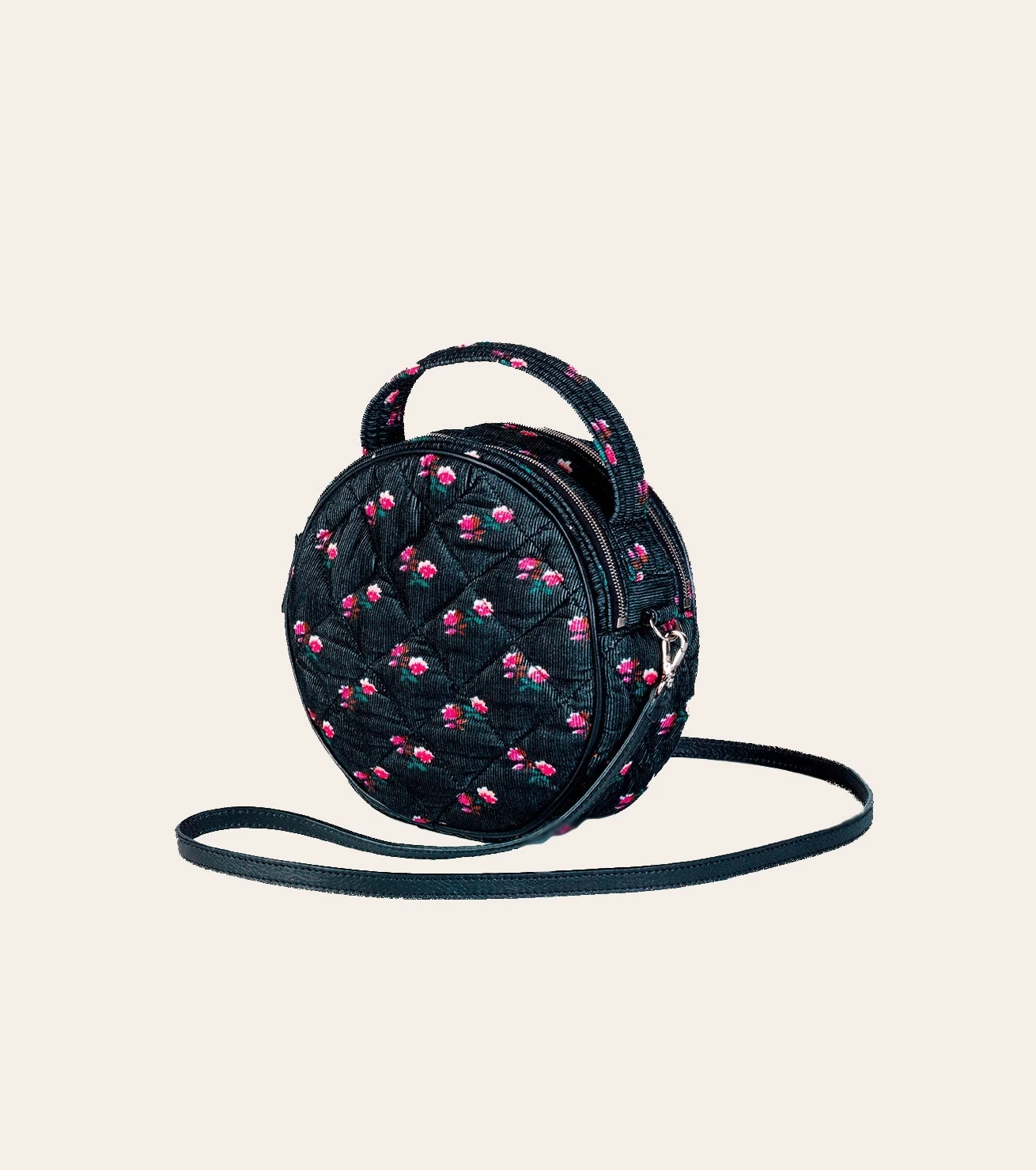- Sac rond matelassé en velours milleraies Pâquerette noir fushia