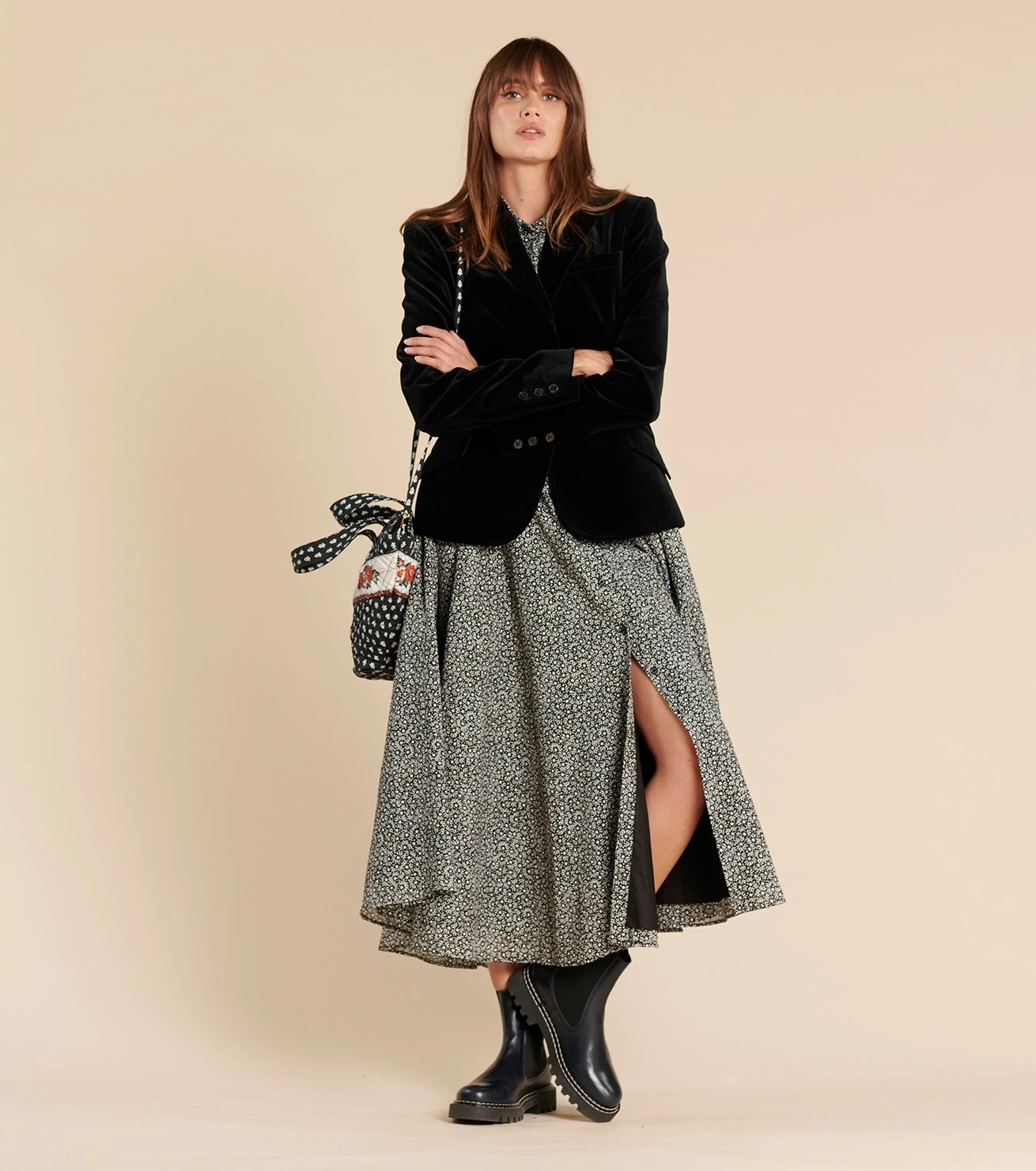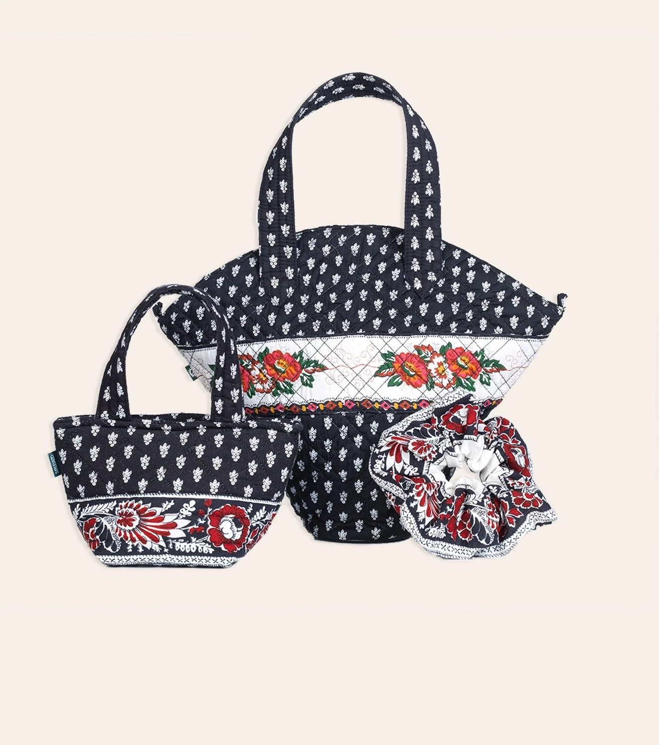Sac matelassé imprimé La Mouche Noir avec frise Petite rose