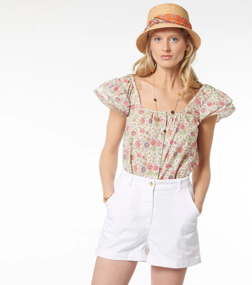 - Short taille haute à la coupe droite et légèrement évasée
