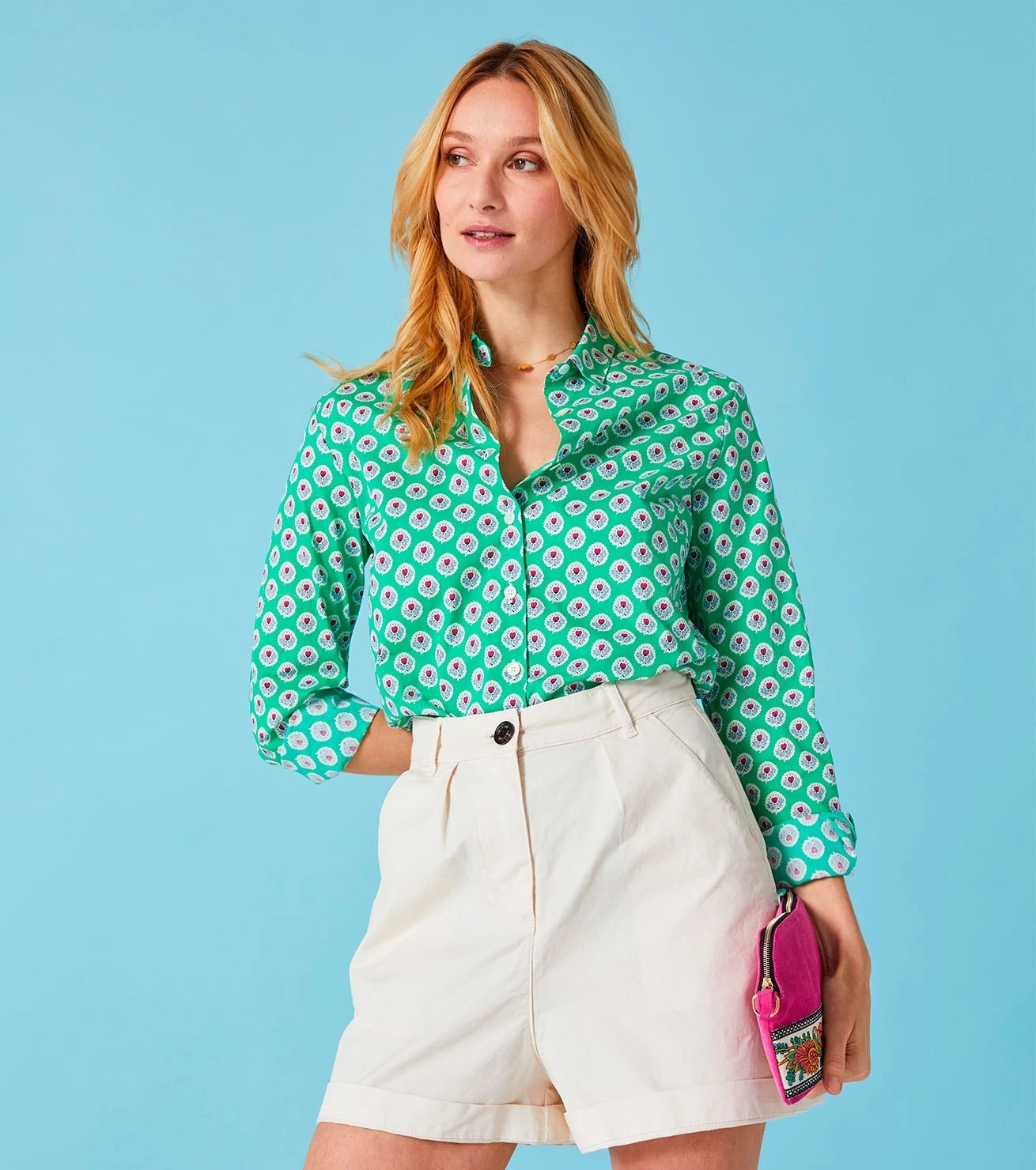 - Short taille haute à la coupe droite et légèrement évasée