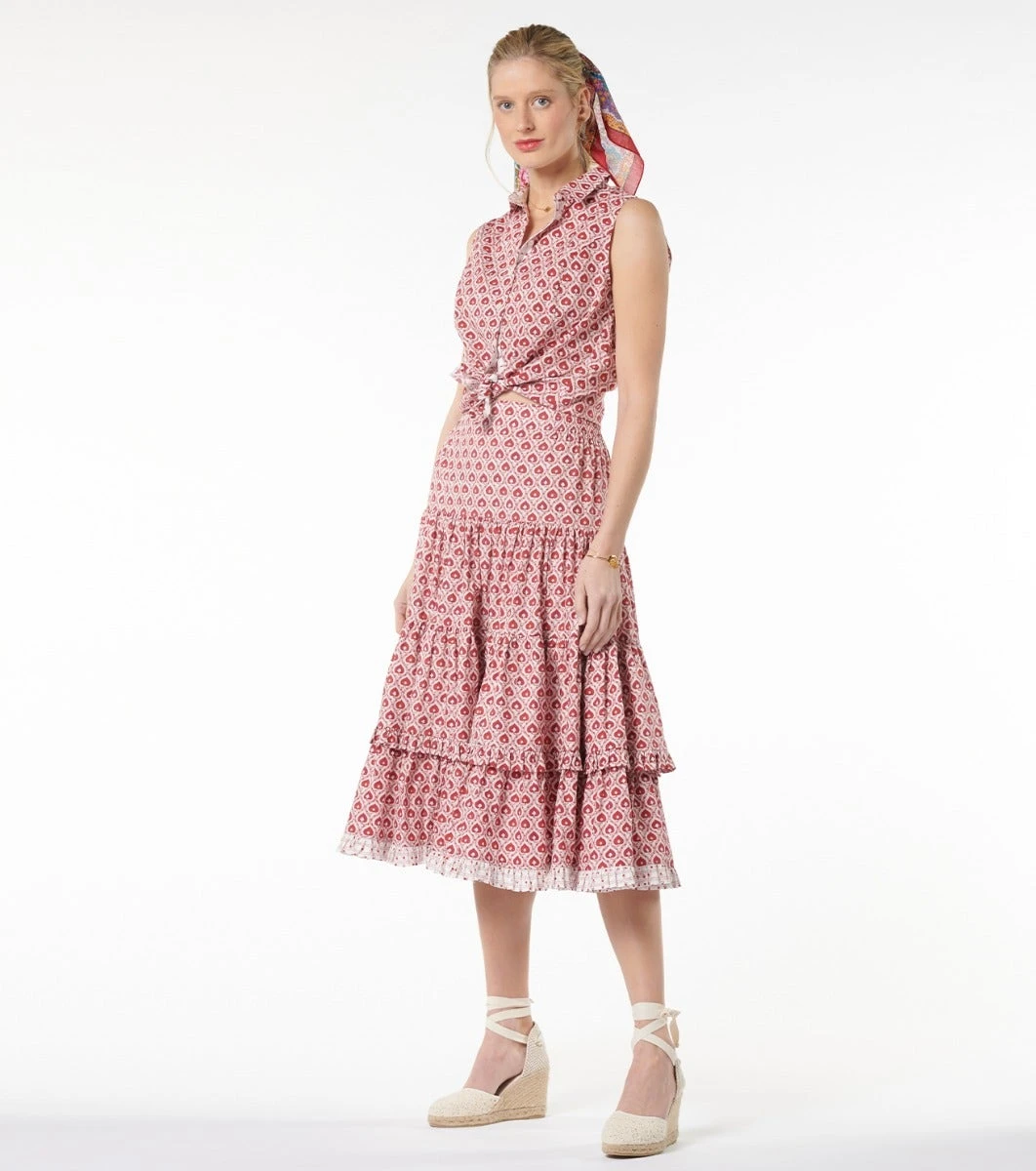- Patte de boutonnage milieu devant avec sous patte contrasté imprimé frise Petite Narcisse rouge