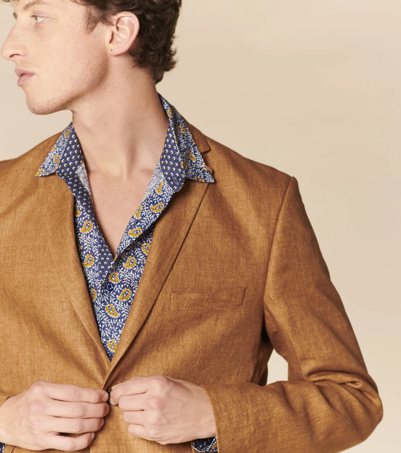 - Opposition en motif Petit Cachemire doublure demi-dos, intérieurs poches et dessous de col