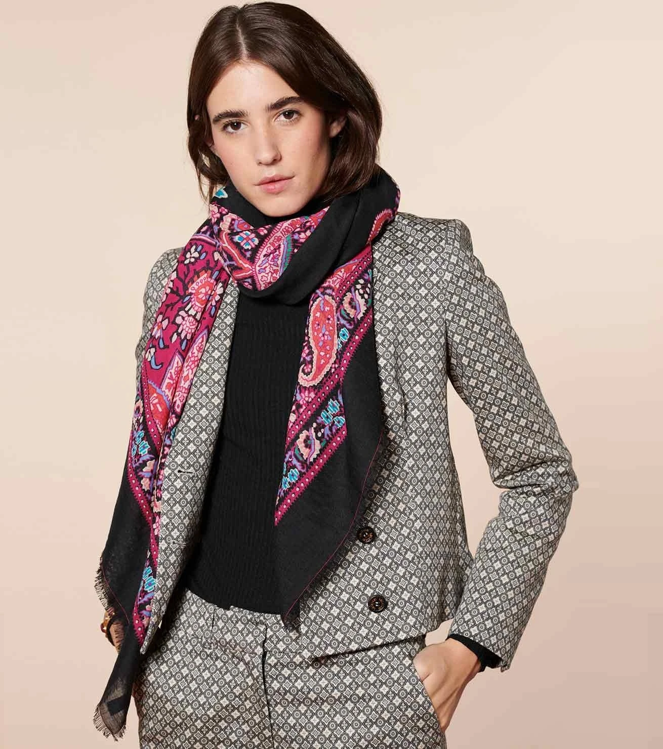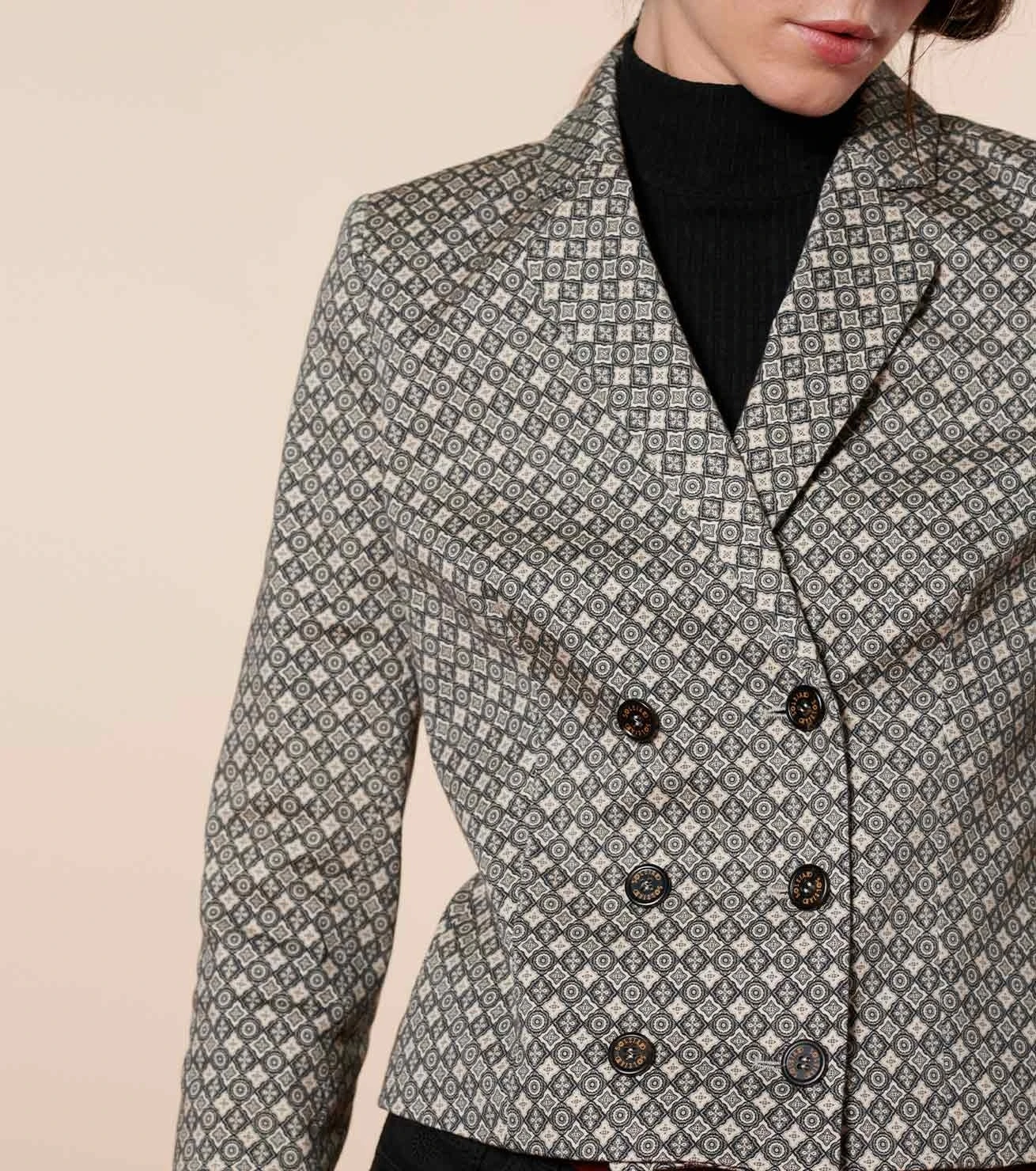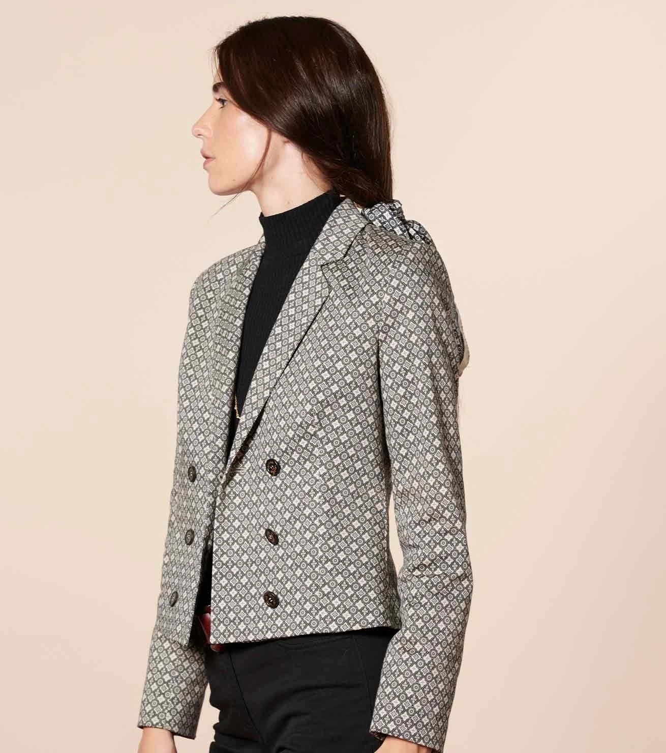 - Veste tailleur courte et droite en gabardine stretch imprimée Mini Mosaïque